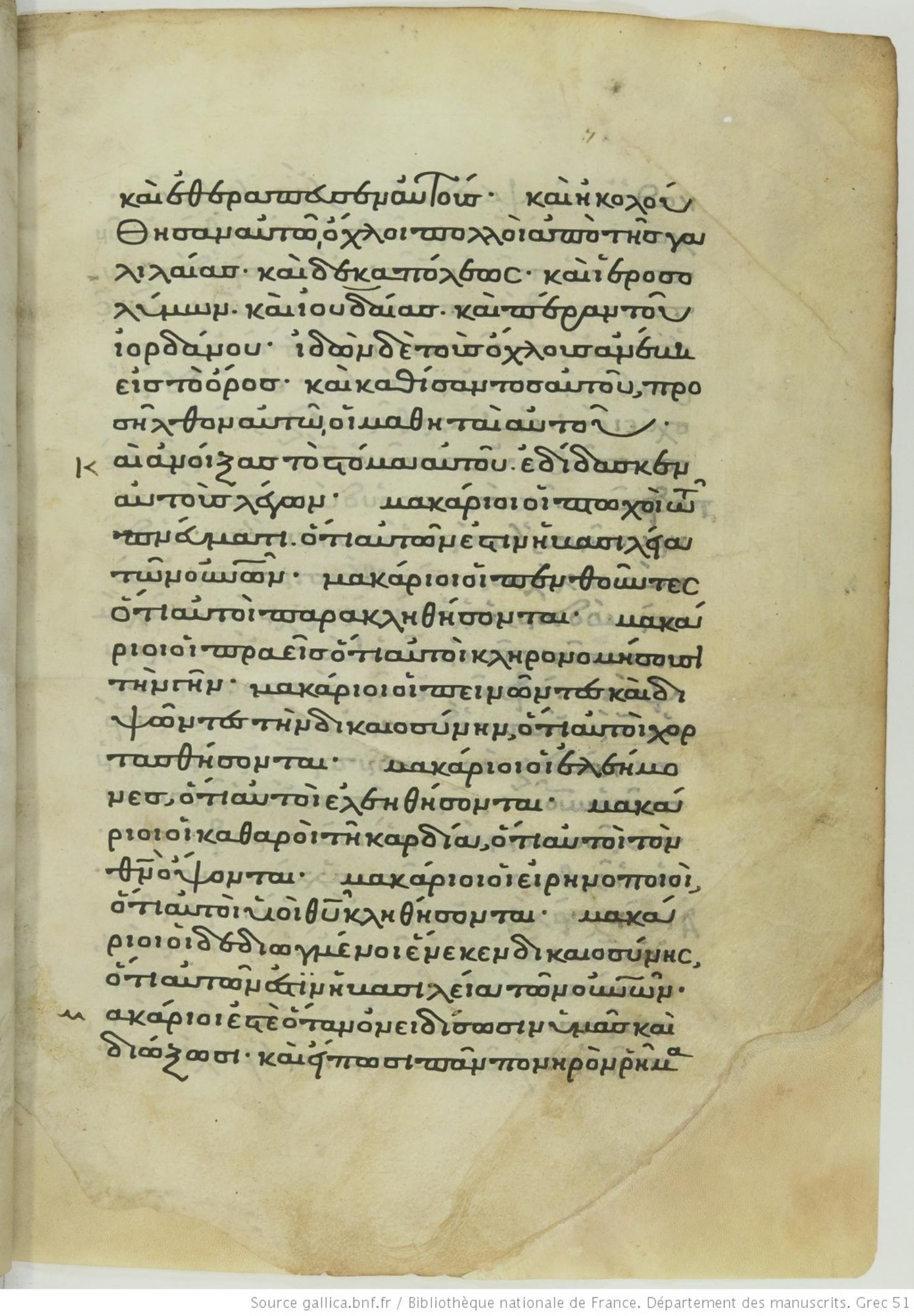Thirteenth-century minuscule of the Gospels on parchment; 240 leaves; 1 column; 24 lines per column. The images are made available by the Bibliothèque Nationale. For recent digital images, visit BNF Gallica.
