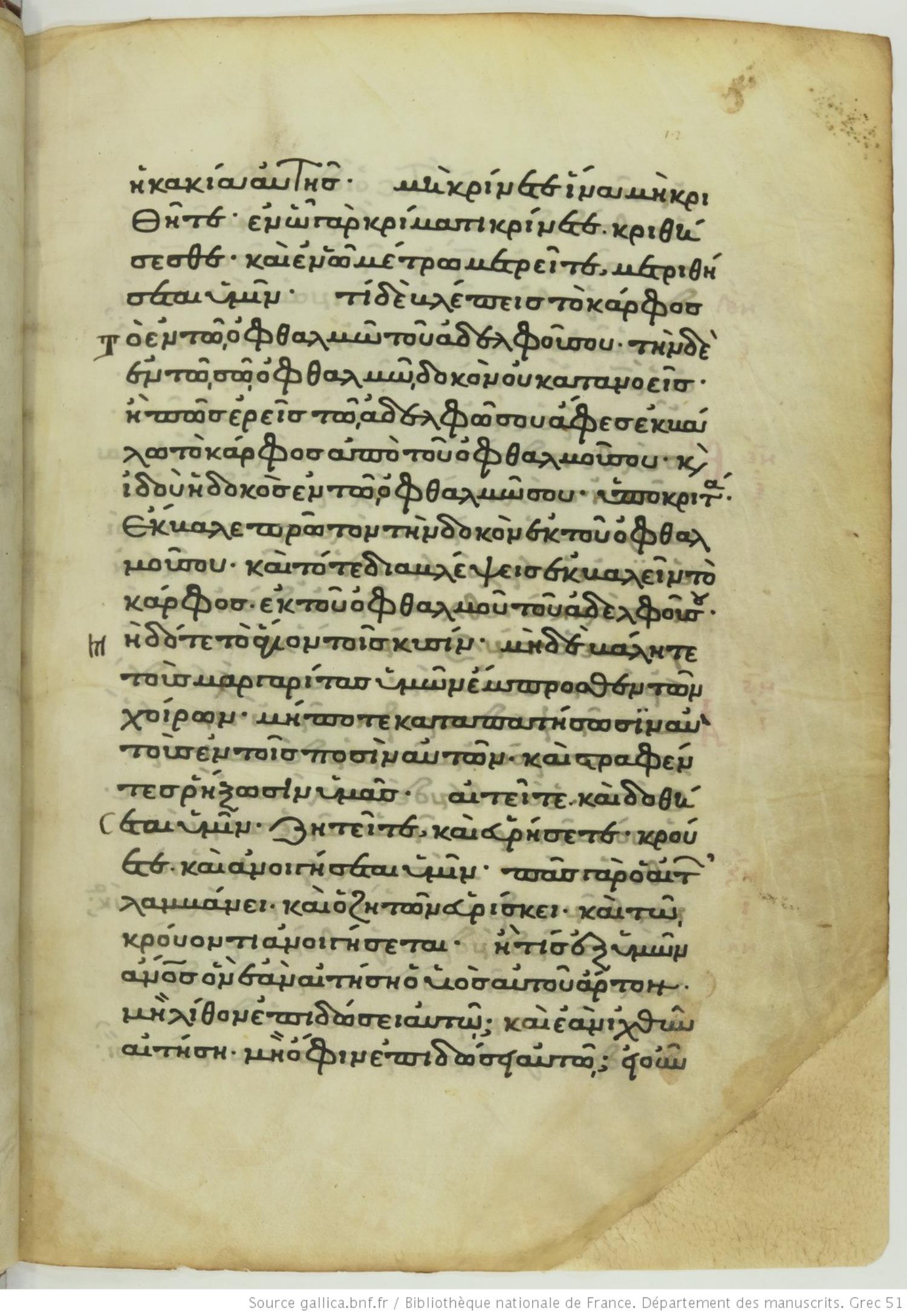 Thirteenth-century minuscule of the Gospels on parchment; 240 leaves; 1 column; 24 lines per column. The images are made available by the Bibliothèque Nationale. For recent digital images, visit BNF Gallica.