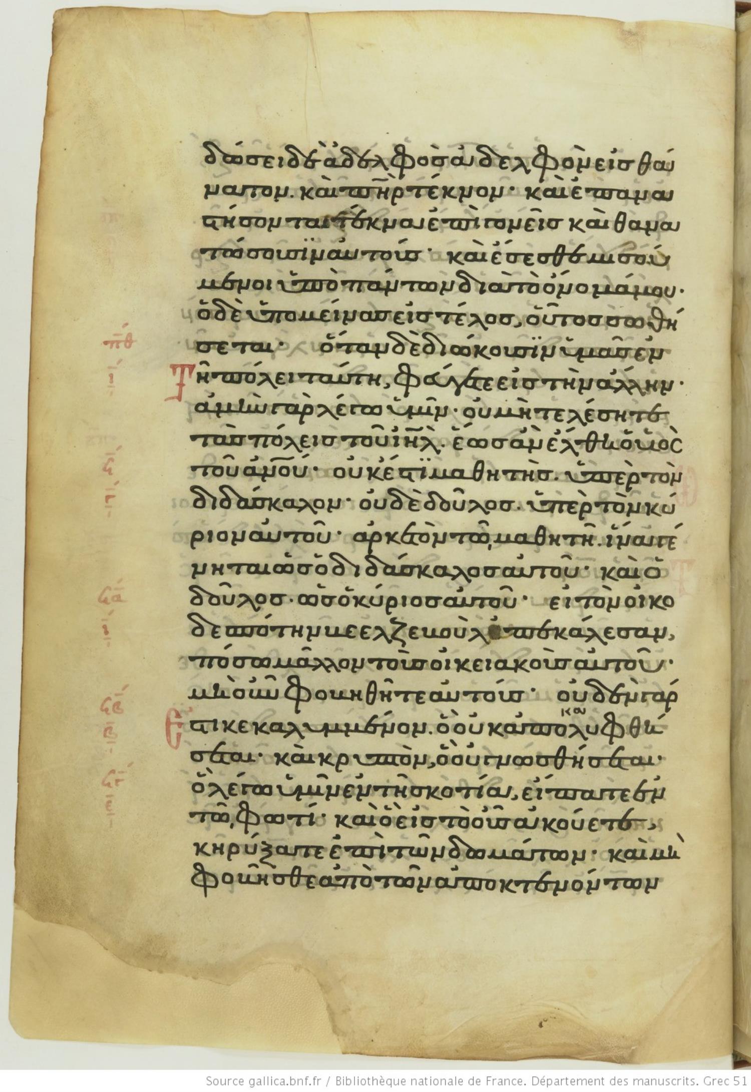 Thirteenth-century minuscule of the Gospels on parchment; 240 leaves; 1 column; 24 lines per column. The images are made available by the Bibliothèque Nationale. For recent digital images, visit BNF Gallica.