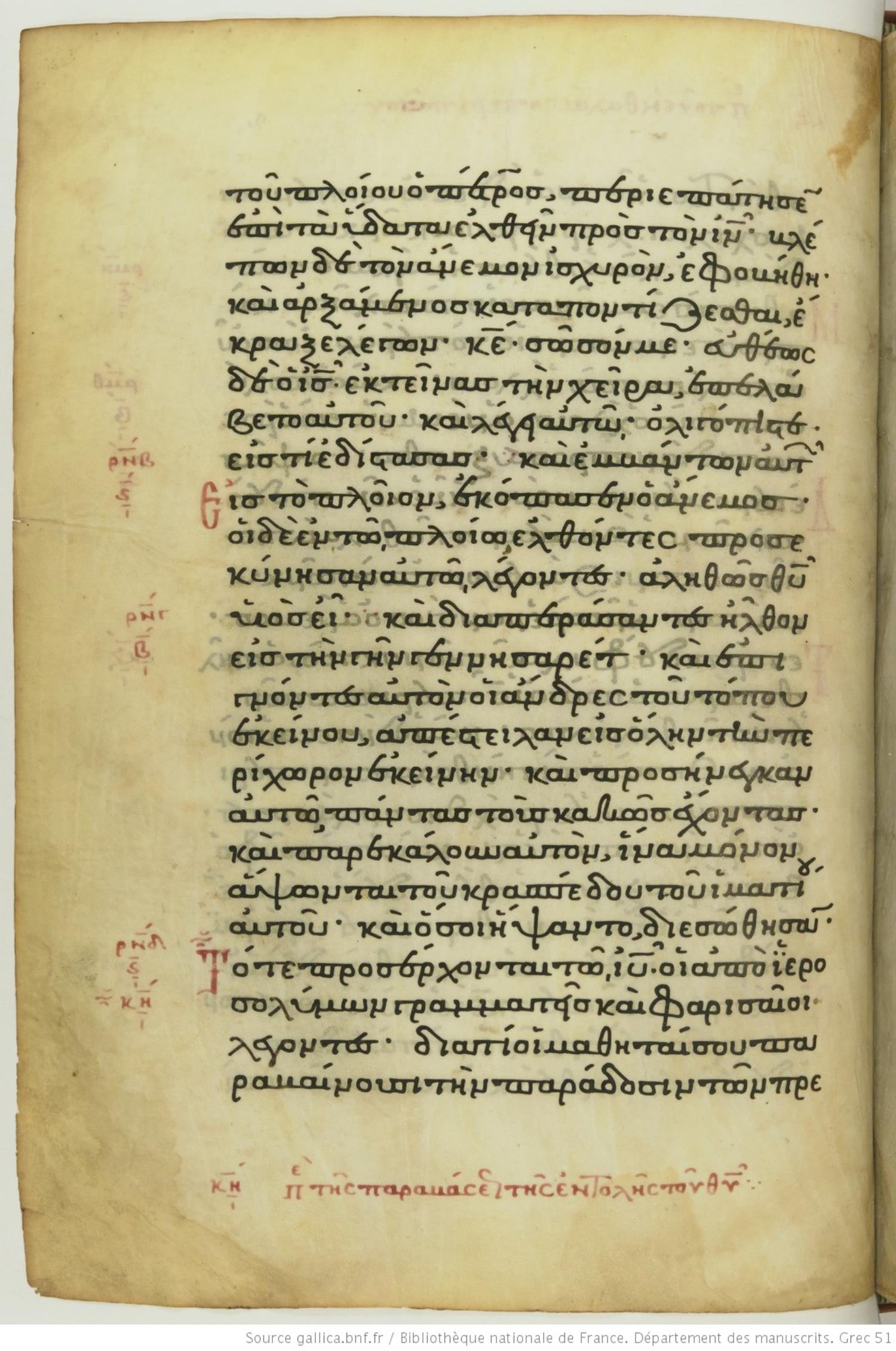 Thirteenth-century minuscule of the Gospels on parchment; 240 leaves; 1 column; 24 lines per column. The images are made available by the Bibliothèque Nationale. For recent digital images, visit BNF Gallica.
