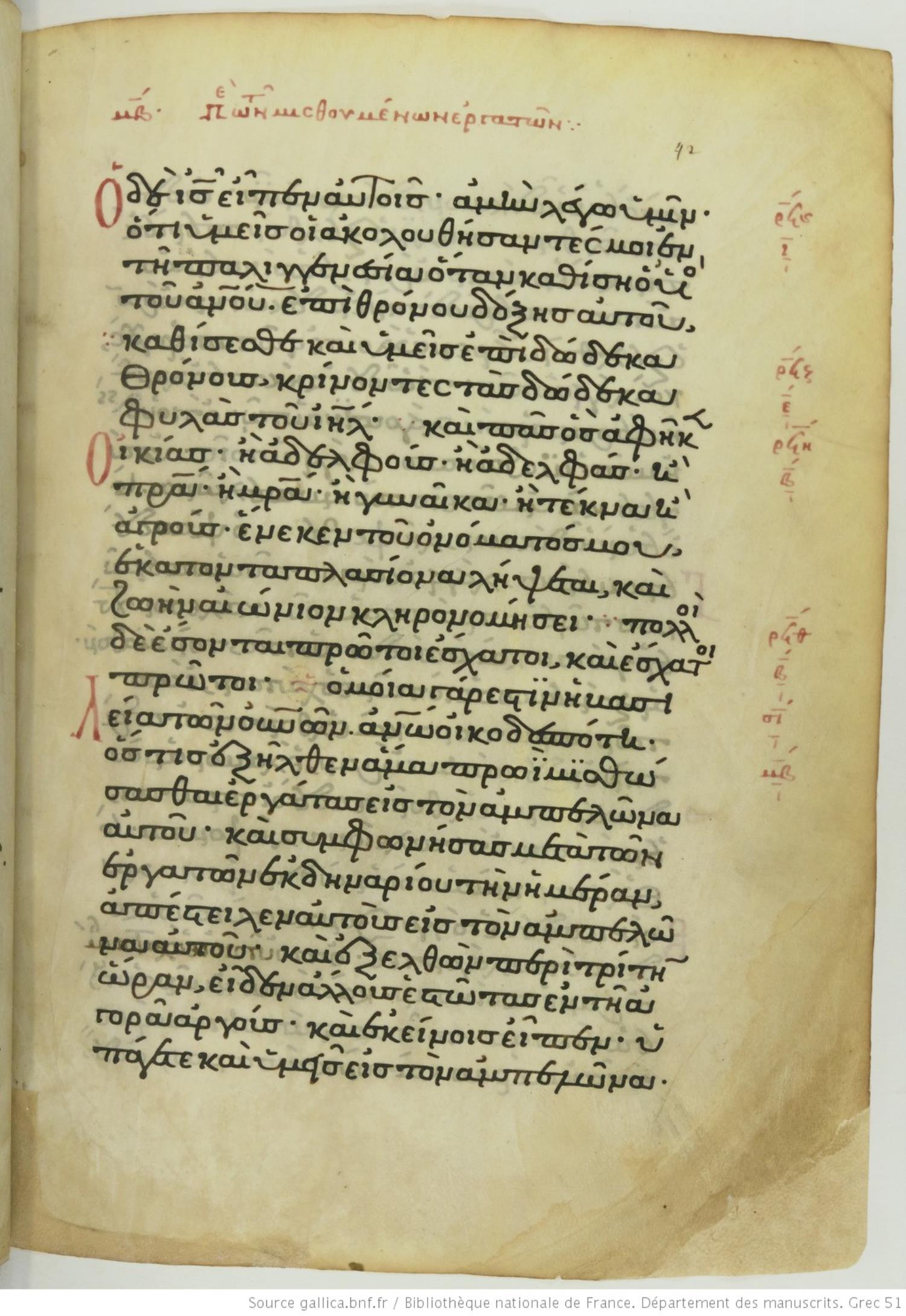 Thirteenth-century minuscule of the Gospels on parchment; 240 leaves; 1 column; 24 lines per column. The images are made available by the Bibliothèque Nationale. For recent digital images, visit BNF Gallica.