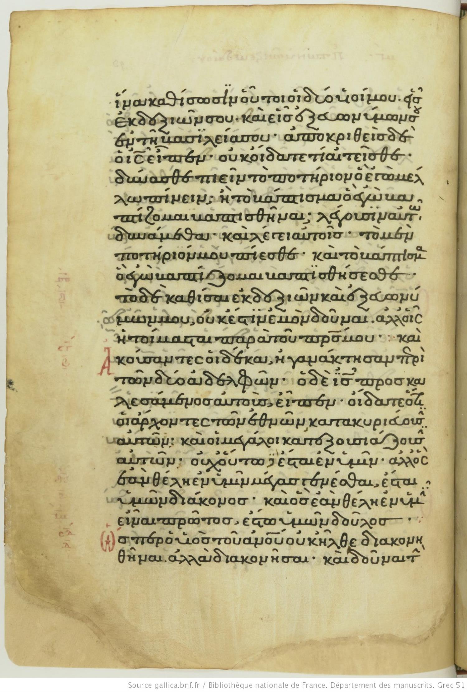 Thirteenth-century minuscule of the Gospels on parchment; 240 leaves; 1 column; 24 lines per column. The images are made available by the Bibliothèque Nationale. For recent digital images, visit BNF Gallica.