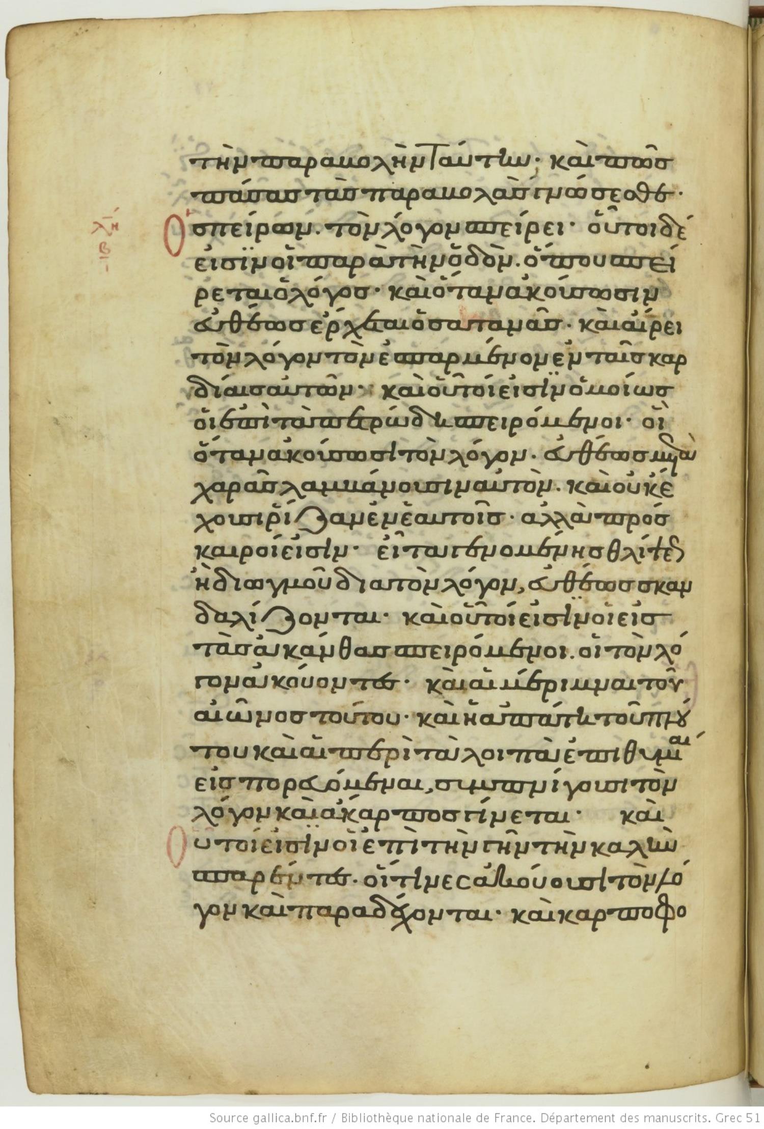 Thirteenth-century minuscule of the Gospels on parchment; 240 leaves; 1 column; 24 lines per column. The images are made available by the Bibliothèque Nationale. For recent digital images, visit BNF Gallica.