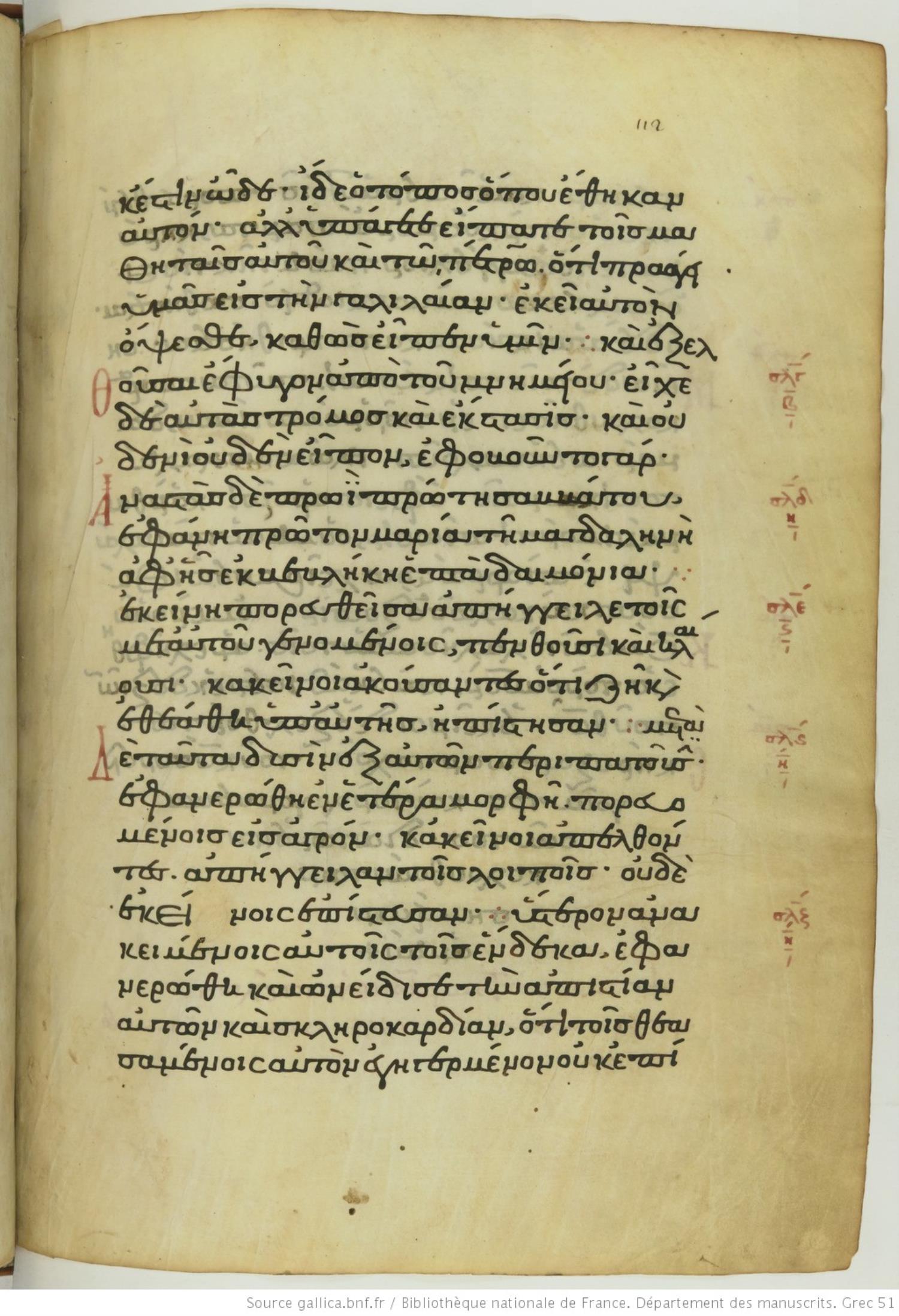 Thirteenth-century minuscule of the Gospels on parchment; 240 leaves; 1 column; 24 lines per column. The images are made available by the Bibliothèque Nationale. For recent digital images, visit BNF Gallica.
