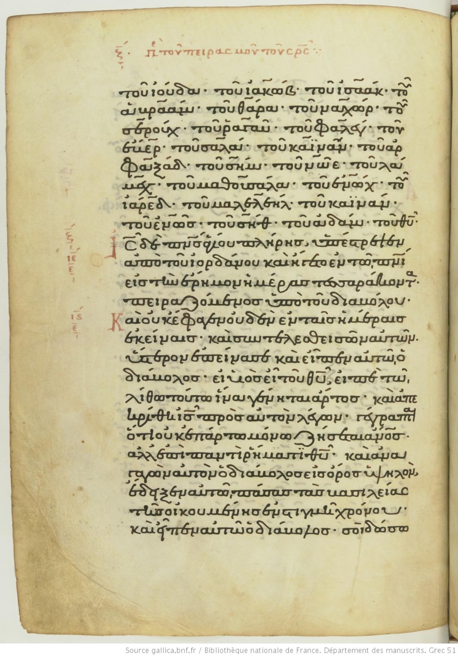 ἡμέρας τεσσεράκοντα πειραζόμενος ὑπὸ τοῦ διαβόλου. Καὶ οὐκ ἔφαγεν οὐδὲν ἐν ταῖς ἡμέραις ἐκείναις, καὶ συντελεσθεισῶν αὐτῶν ἐπείνασεν.