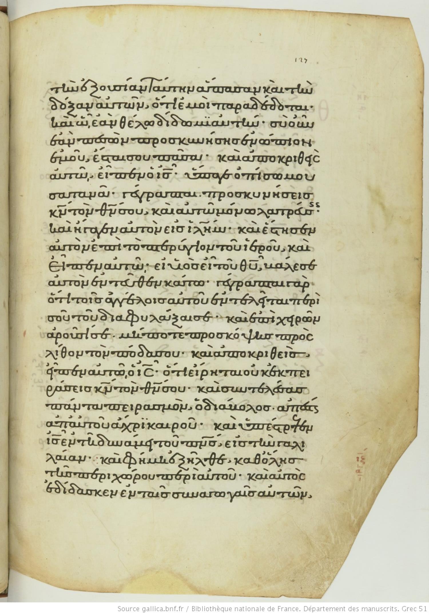 καὶ ἀποκριθεὶς εἶπεν αὐτῷ ὁ Ἰησοῦς ὅτι Εἴρηται Οὐκ ἐκπειράσεις Κύριον τὸν θεόν σου.