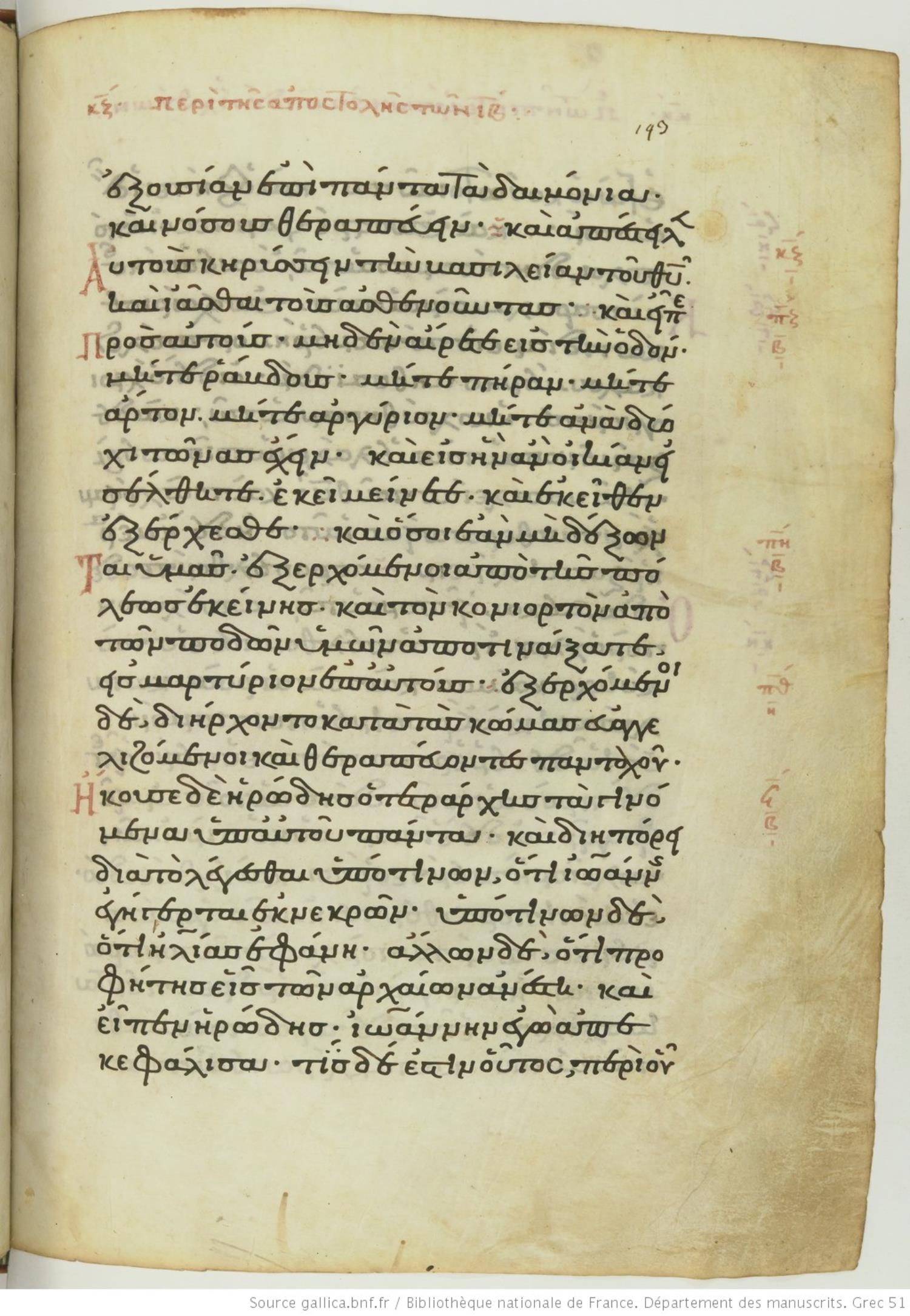 Thirteenth-century minuscule of the Gospels on parchment; 240 leaves; 1 column; 24 lines per column. The images are made available by the Bibliothèque Nationale. For recent digital images, visit BNF Gallica.