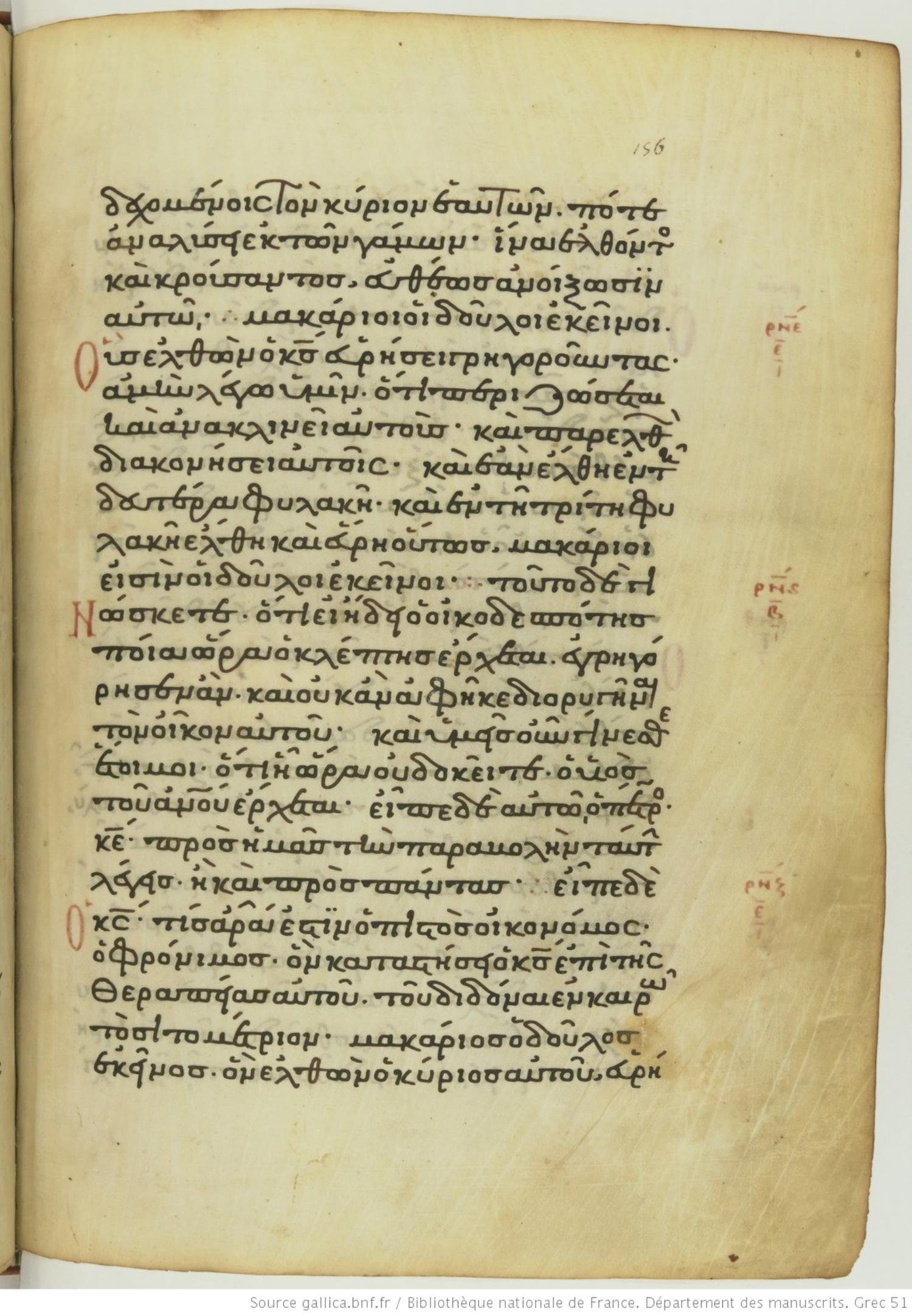 Thirteenth-century minuscule of the Gospels on parchment; 240 leaves; 1 column; 24 lines per column. The images are made available by the Bibliothèque Nationale. For recent digital images, visit BNF Gallica.
