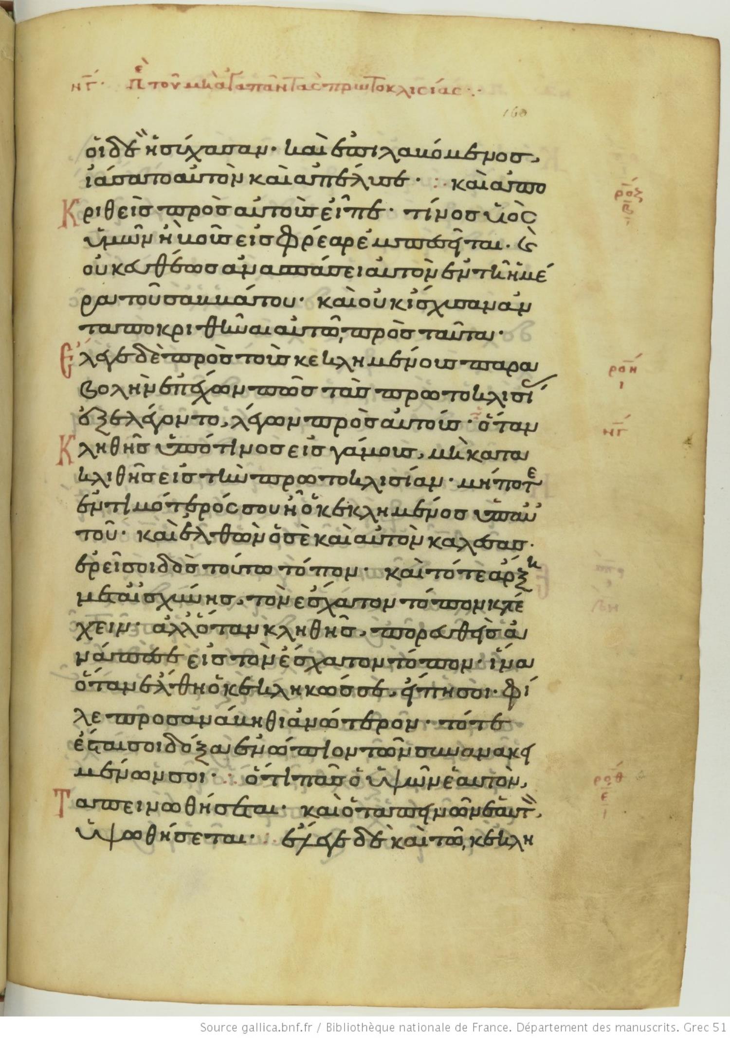 Thirteenth-century minuscule of the Gospels on parchment; 240 leaves; 1 column; 24 lines per column. The images are made available by the Bibliothèque Nationale. For recent digital images, visit BNF Gallica.
