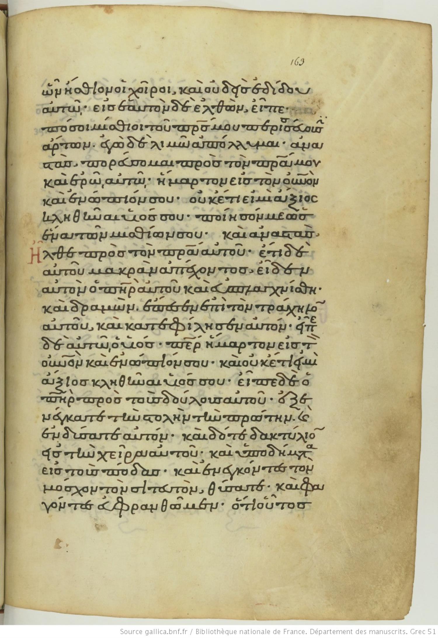 Thirteenth-century minuscule of the Gospels on parchment; 240 leaves; 1 column; 24 lines per column. The images are made available by the Bibliothèque Nationale. For recent digital images, visit BNF Gallica.