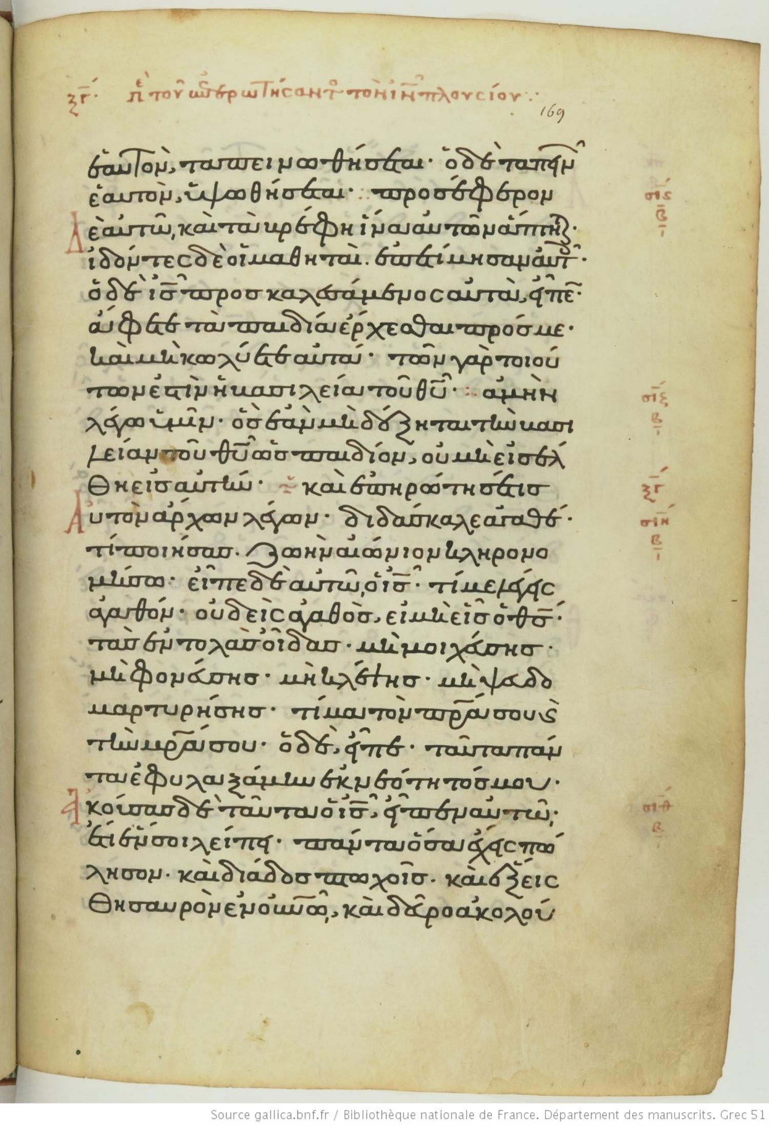 Thirteenth-century minuscule of the Gospels on parchment; 240 leaves; 1 column; 24 lines per column. The images are made available by the Bibliothèque Nationale. For recent digital images, visit BNF Gallica.