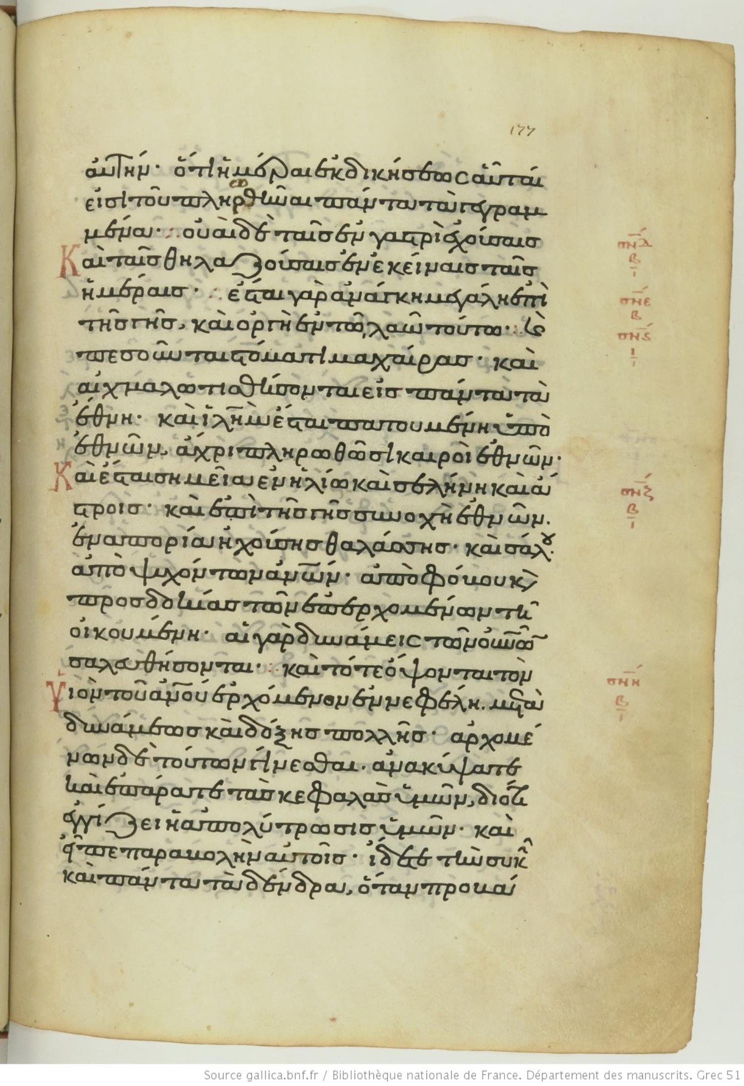 Thirteenth-century minuscule of the Gospels on parchment; 240 leaves; 1 column; 24 lines per column. The images are made available by the Bibliothèque Nationale. For recent digital images, visit BNF Gallica.