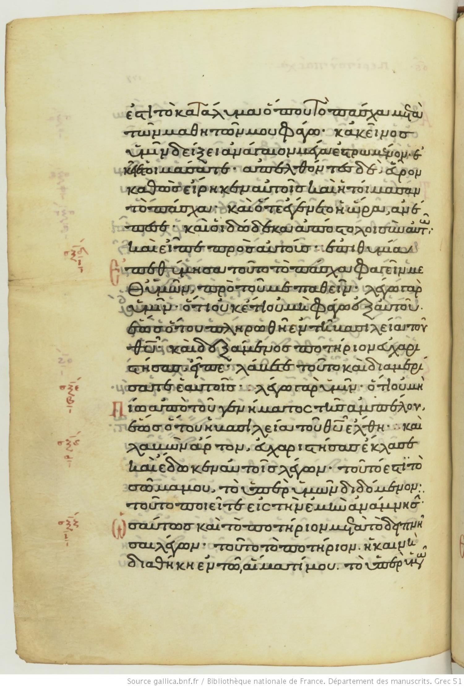 Thirteenth-century minuscule of the Gospels on parchment; 240 leaves; 1 column; 24 lines per column. The images are made available by the Bibliothèque Nationale. For recent digital images, visit BNF Gallica.