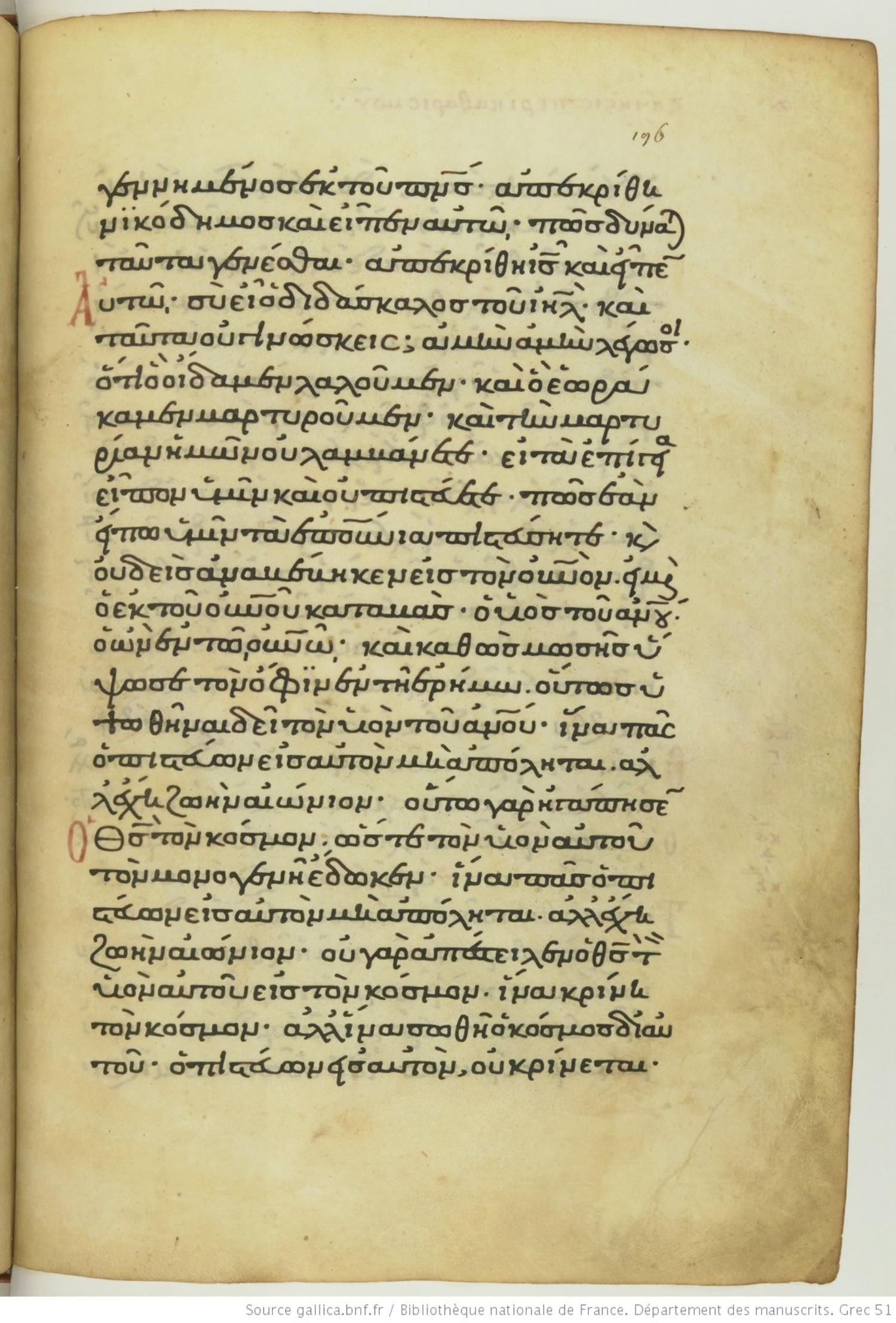 Thirteenth-century minuscule of the Gospels on parchment; 240 leaves; 1 column; 24 lines per column. The images are made available by the Bibliothèque Nationale. For recent digital images, visit BNF Gallica.
