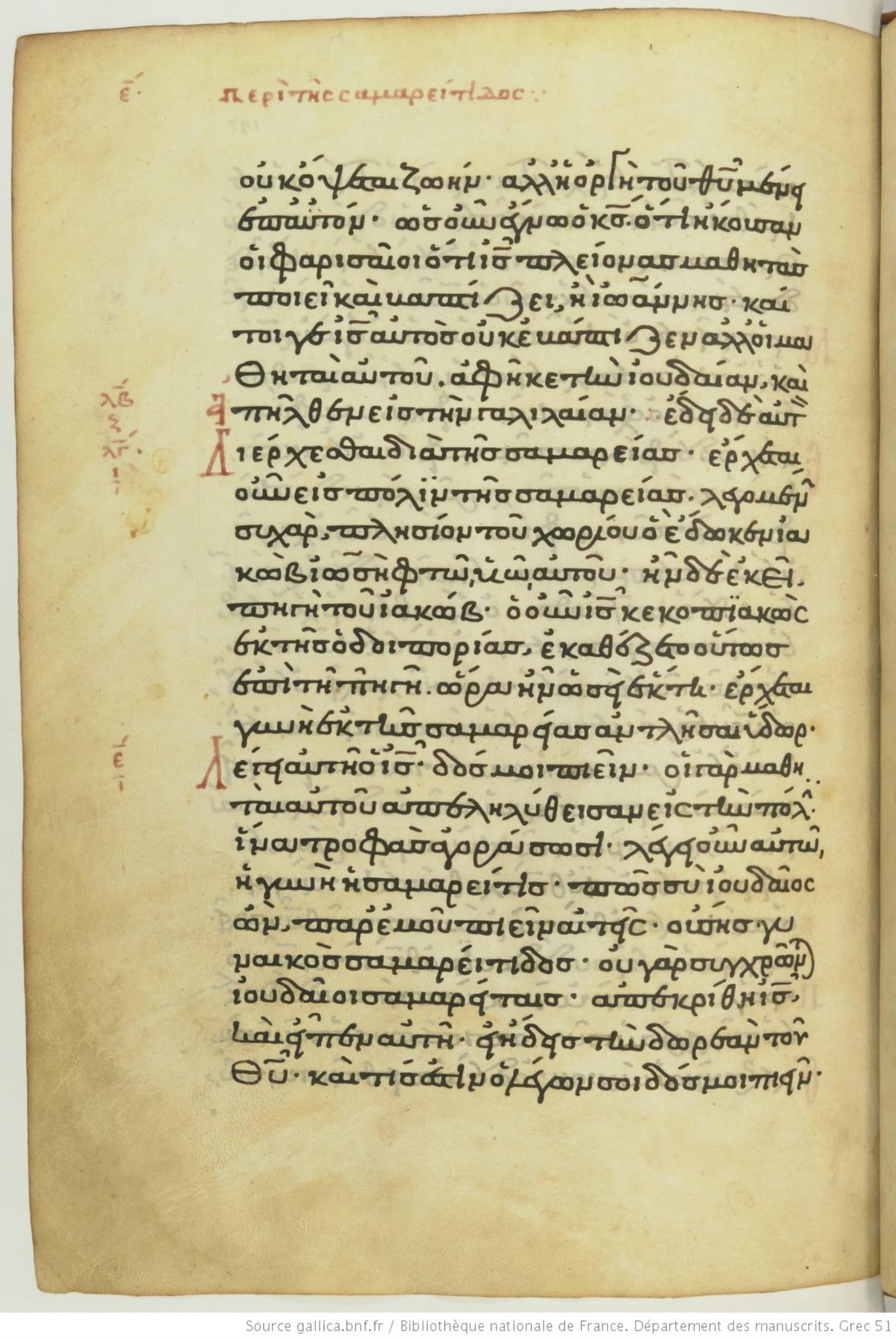 ἔρχεται οὖν εἰς πόλιν τῆς Σαμαρίας / Σαμαρείας λεγομένην Συχὰρ πλησίον τοῦ χωρίου ὃ ἔδωκεν Ἰακὼβ τῷ Ἰωσὴφ τῷ υἱῷ αὐτοῦ·
