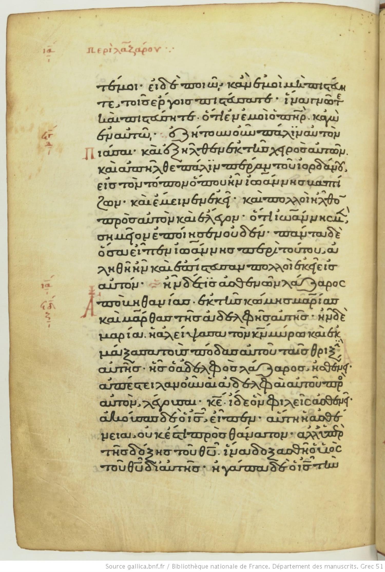 Ἦν δέ τις ἀσθενῶν, Λάζαρος ἀπὸ Βηθανίας ἐκ τῆς κώμης Μαρίας καὶ Μάρθας τῆς ἀδελφῆς αὐτῆς.
