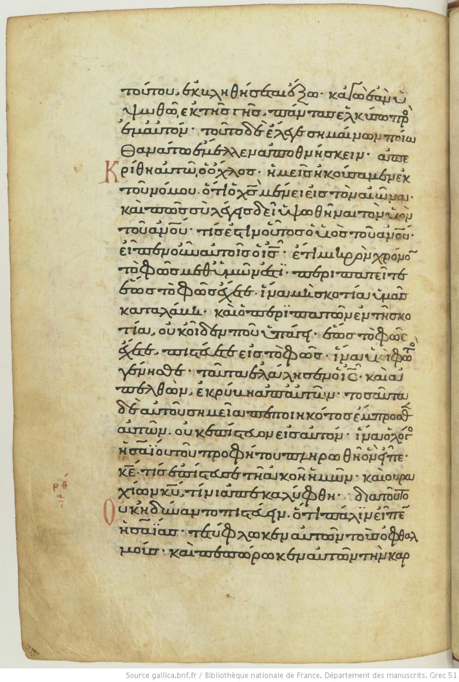 Thirteenth-century minuscule of the Gospels on parchment; 240 leaves; 1 column; 24 lines per column. The images are made available by the Bibliothèque Nationale. For recent digital images, visit BNF Gallica.