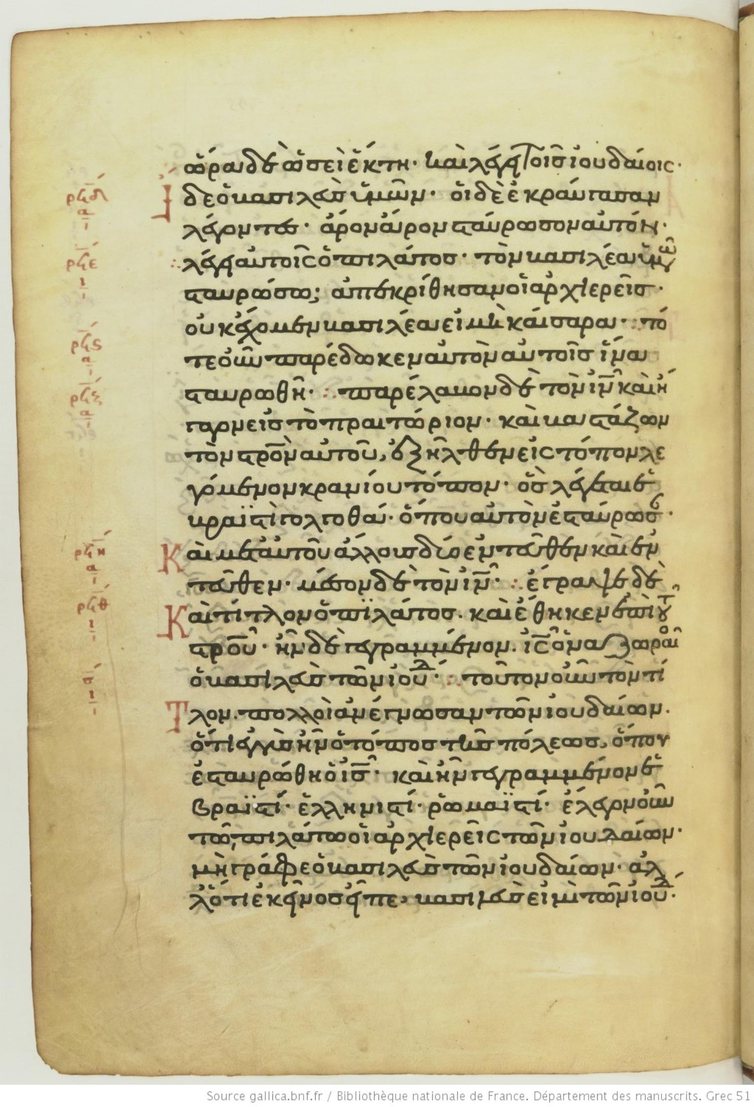 Thirteenth-century minuscule of the Gospels on parchment; 240 leaves; 1 column; 24 lines per column. The images are made available by the Bibliothèque Nationale. For recent digital images, visit BNF Gallica.