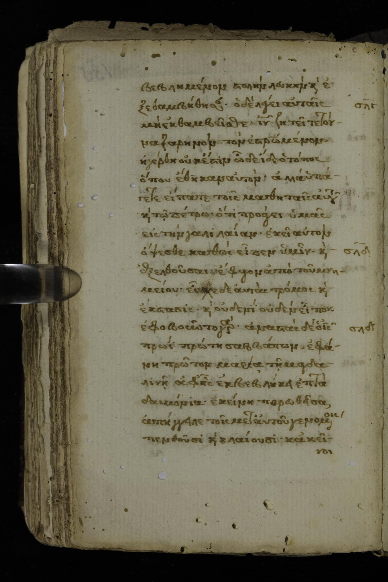 Seventeenth century minuscule of the Gospels and Revelation dated to 1650; 317 leaves, 1 column, 19-20 lines per column. Images were taken at the National Library of Greece in Athens.