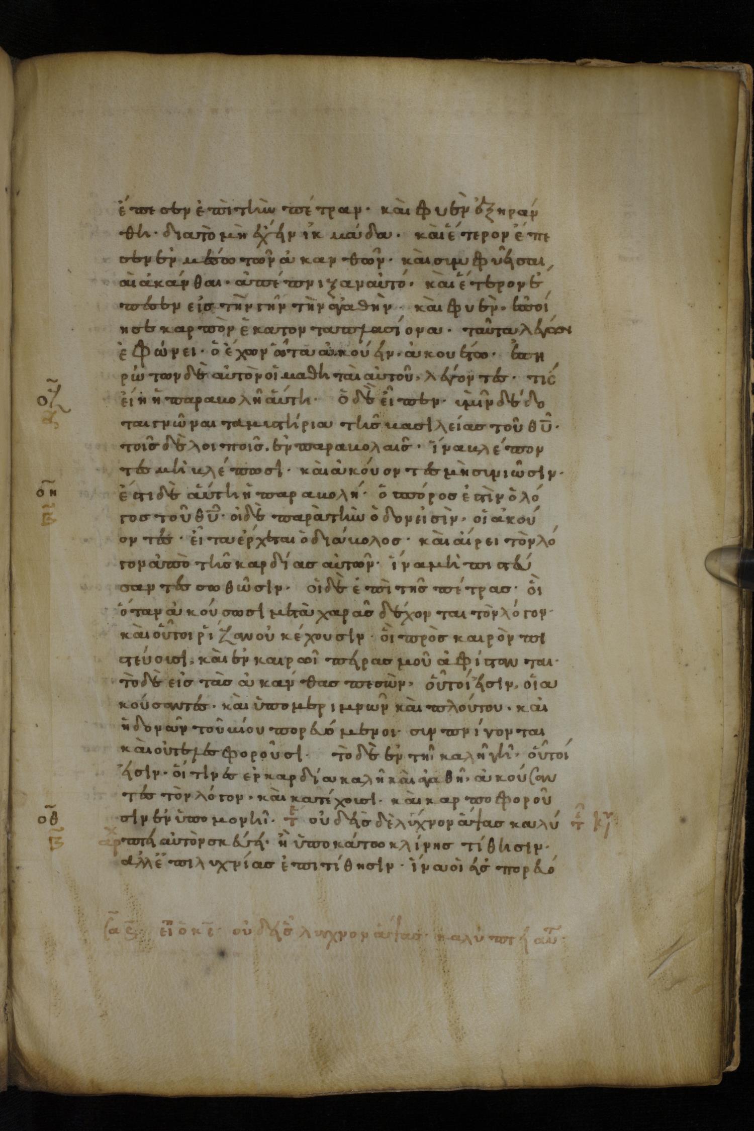 Tenth or eleventh century minuscule of the Gospels on parchment; 46 leaves, single column, 29 lines per column.