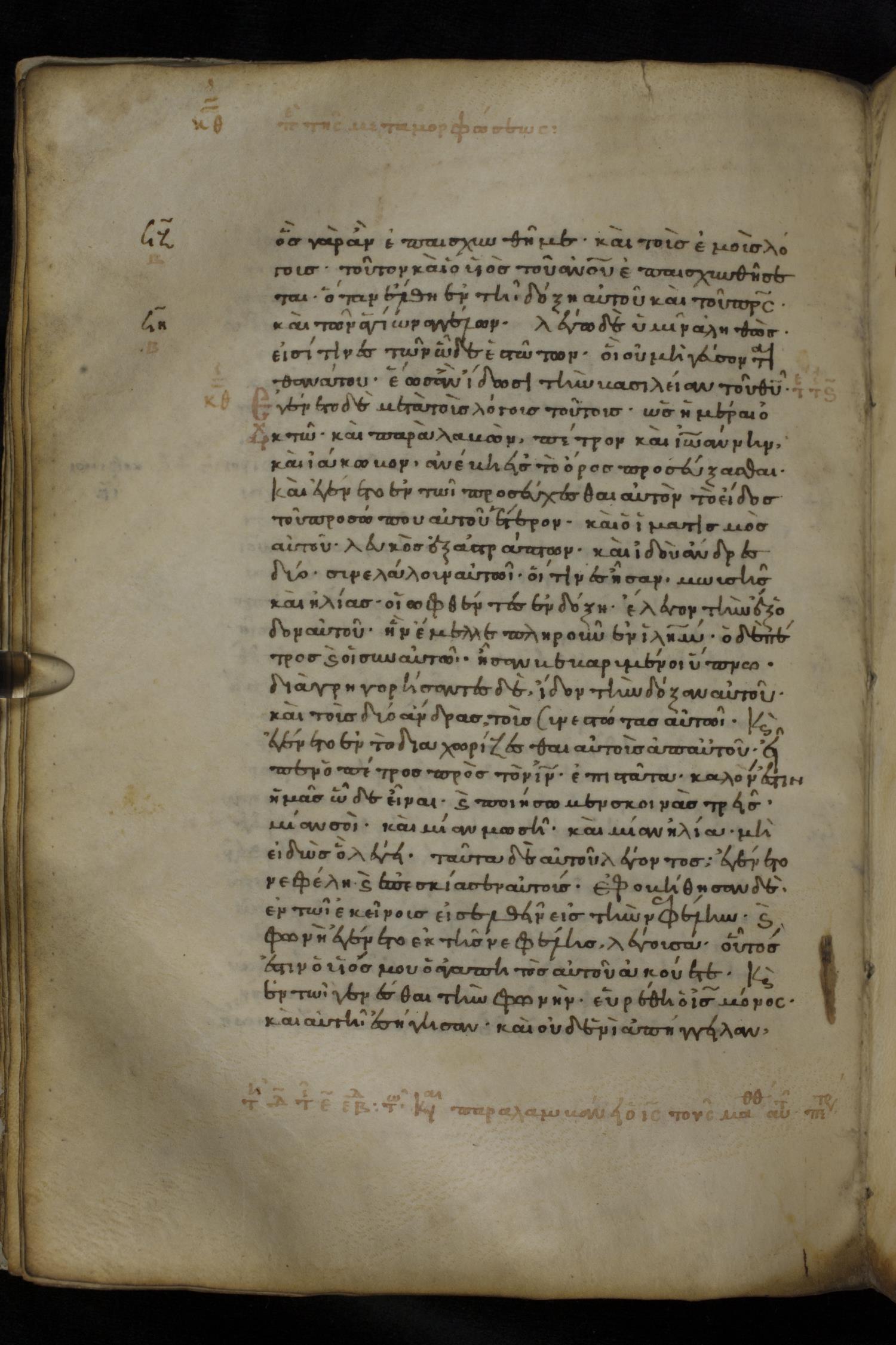 Tenth or eleventh century minuscule of the Gospels on parchment; 46 leaves, single column, 29 lines per column.