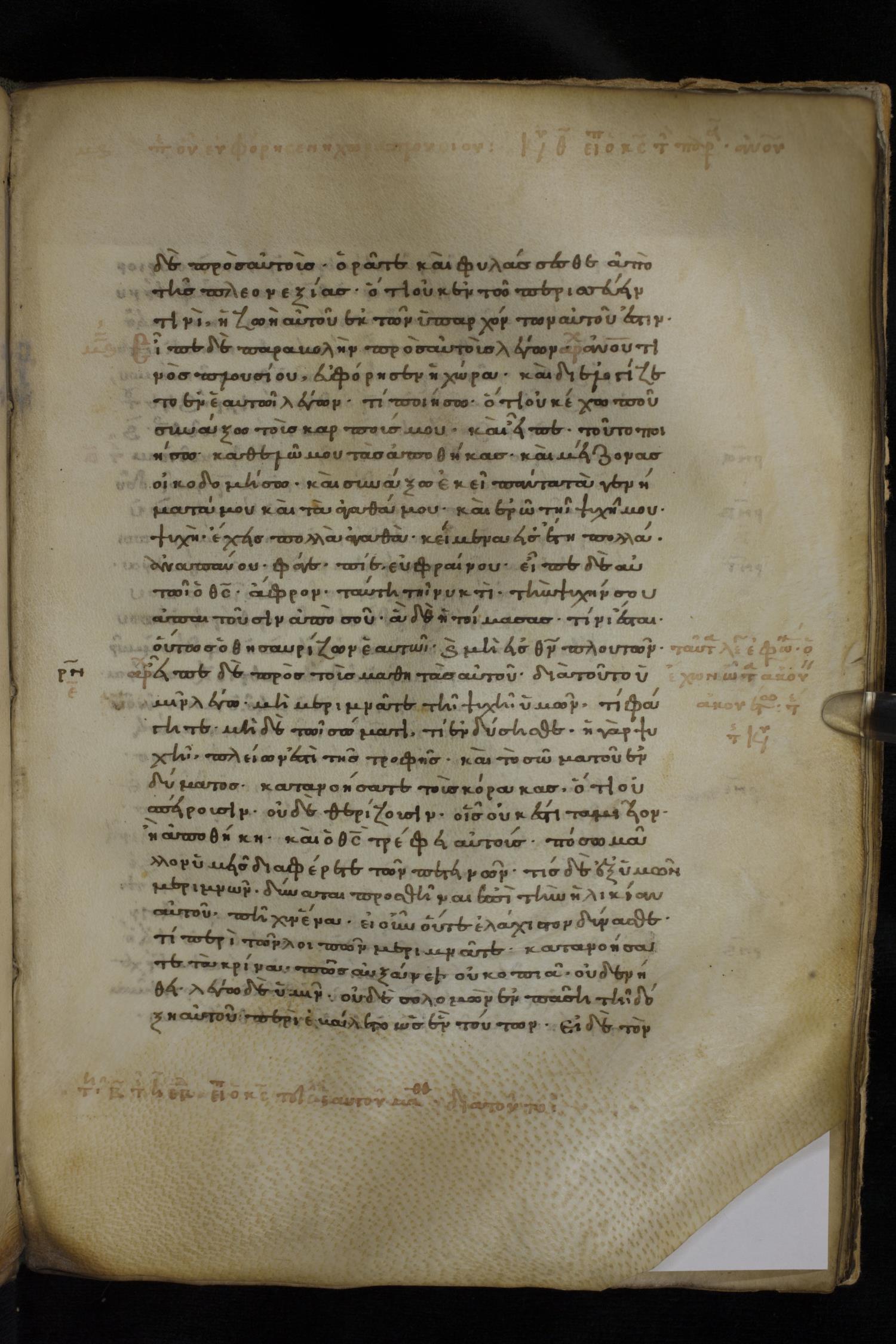 Tenth or eleventh century minuscule of the Gospels on parchment; 46 leaves, single column, 29 lines per column.