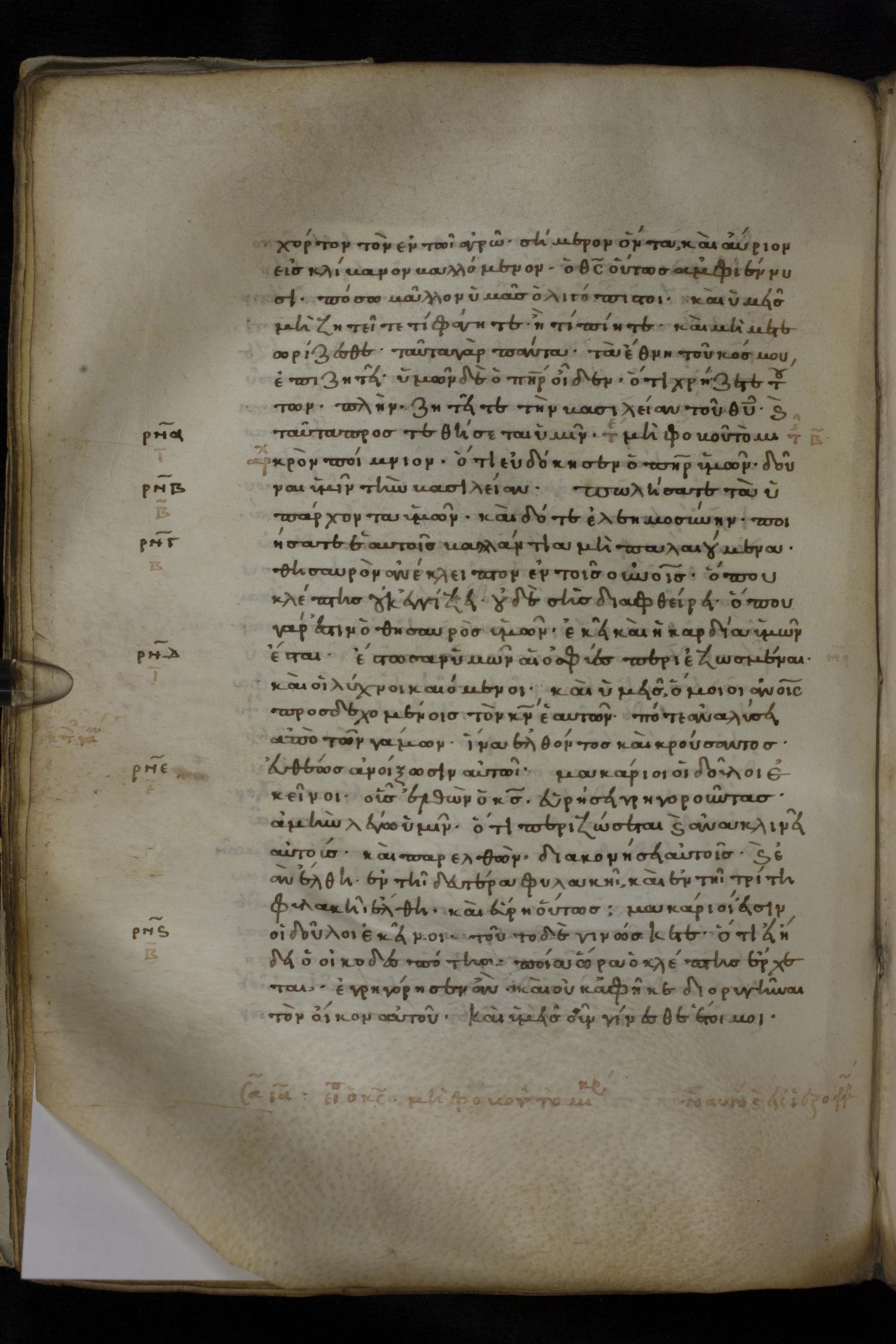 Tenth or eleventh century minuscule of the Gospels on parchment; 46 leaves, single column, 29 lines per column.