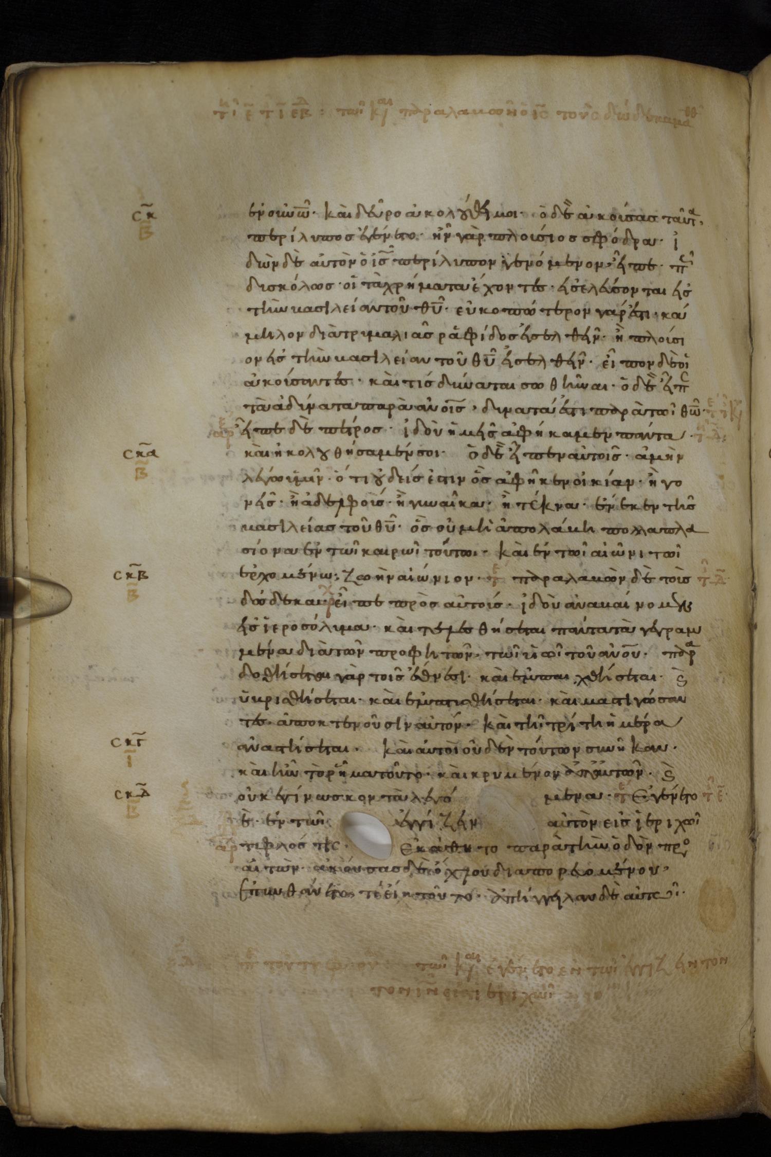 Tenth or eleventh century minuscule of the Gospels on parchment; 46 leaves, single column, 29 lines per column.