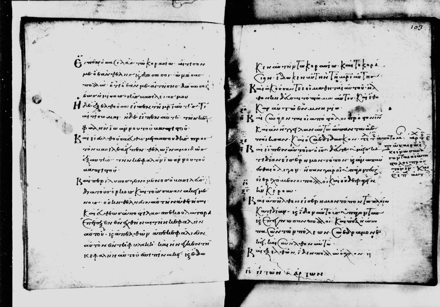 καὶ ἐξελθοῦσα εἶπεν τῇ μητρὶ αὐτῆς Τί αἰτήσωμαι; ἡ δὲ εἶπεν Τὴν κεφαλὴν Ἰωάνου / Ἰωάννου τοῦ βαπτίζοντος.