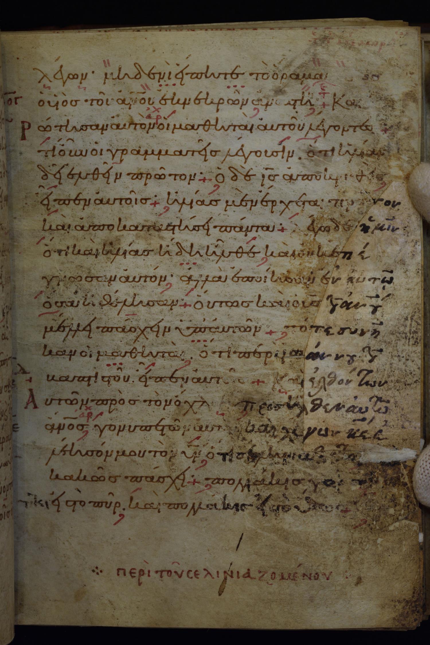 Καὶ καταβαινόντων αὐτῶν ἐκ τοῦ ὄρους ἐνετείλατο αὐτοῖς ὁ Ἰησοῦς λέγων Μηδενὶ εἴπητε τὸ ὅραμα ἕως οὗ ὁ υἱὸς τοῦ ἀνθρώπου ἐκ νεκρῶν ἐγερθῇ.