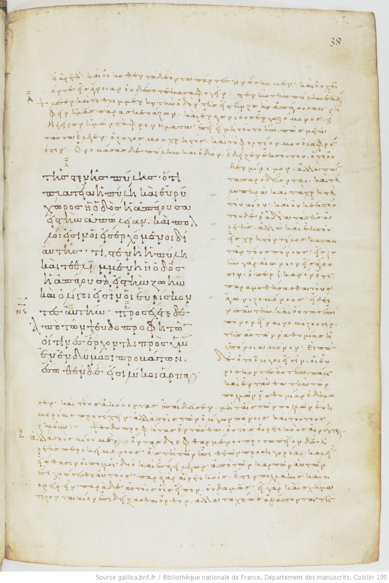 Tenth-century minuscule of the Gospels with commentary on parchment; 469 leaves, 1 column, varying number of lines per column. Images are made available by the Bilbiothèque Nationale. For recent images, please visit BNF Gallica.