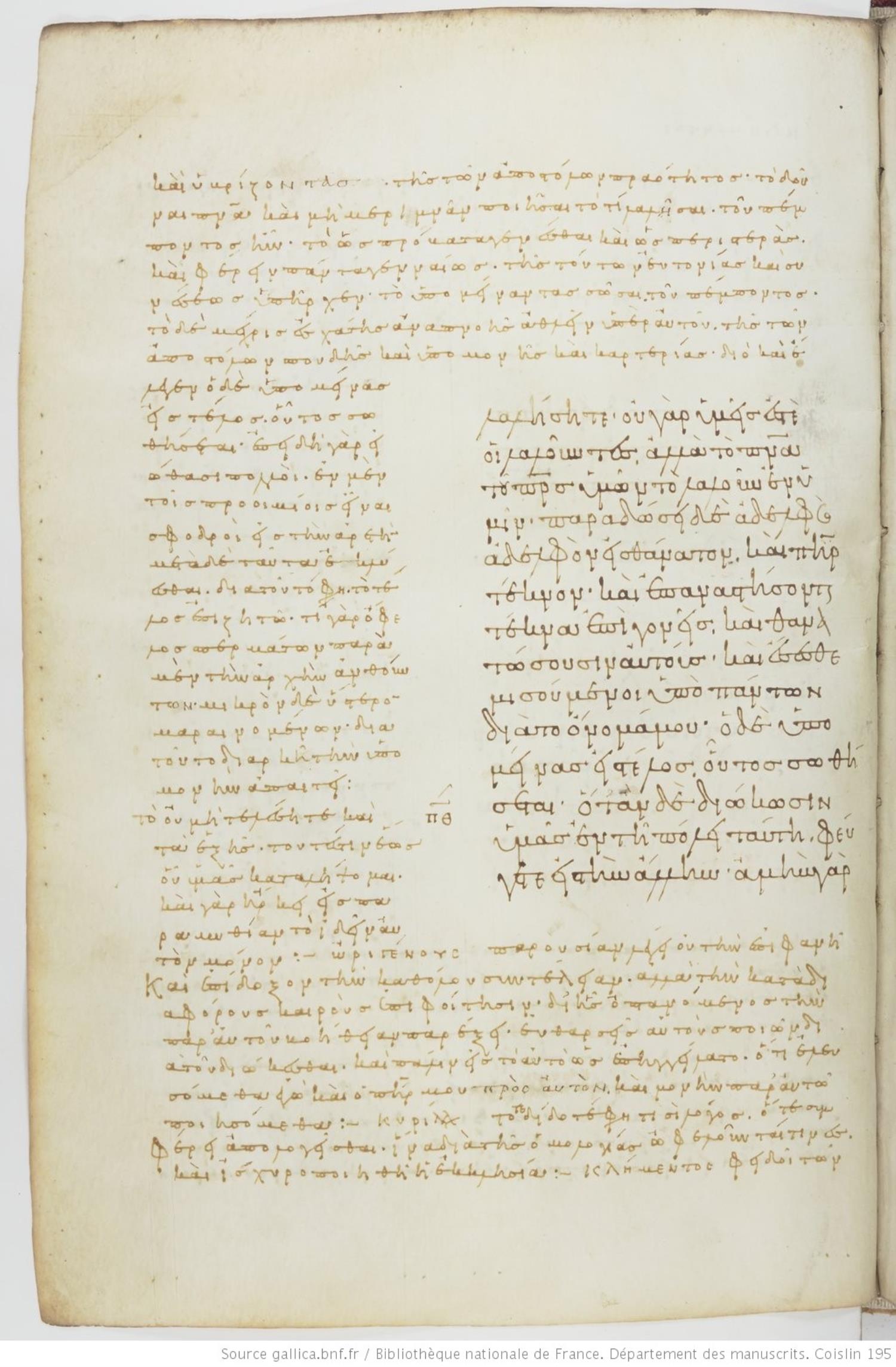 Tenth-century minuscule of the Gospels with commentary on parchment; 469 leaves, 1 column, varying number of lines per column. Images are made available by the Bilbiothèque Nationale. For recent images, please visit BNF Gallica.