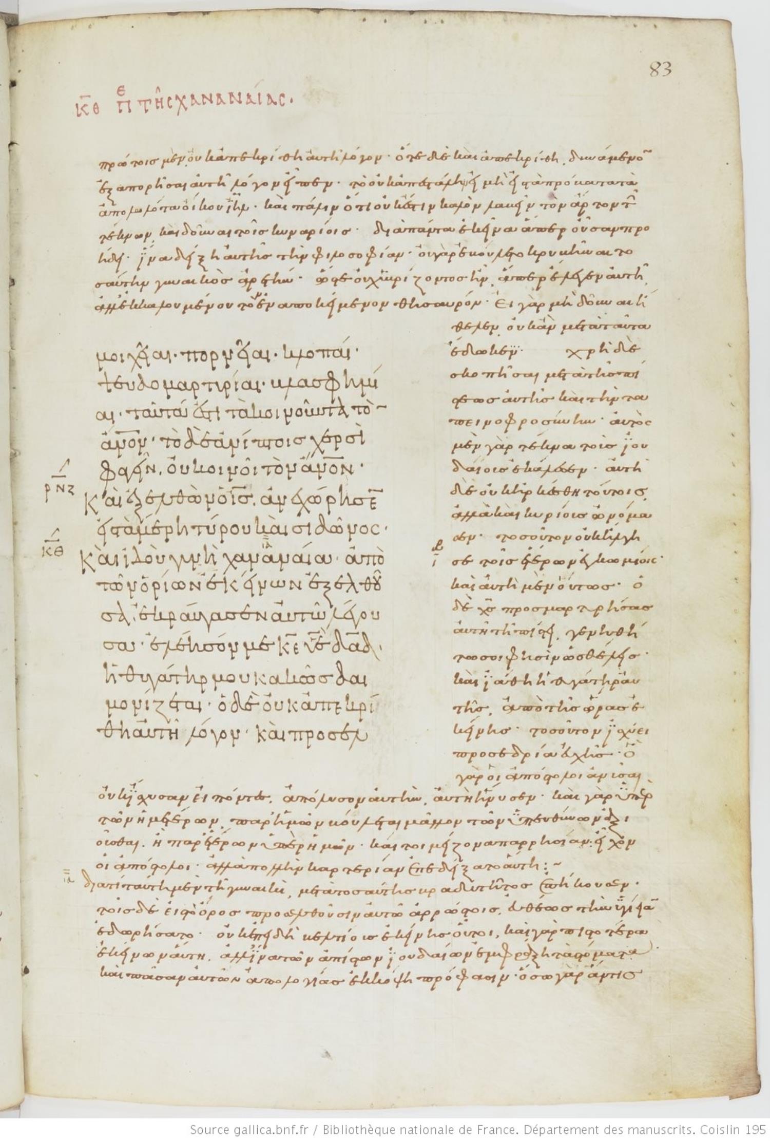 Tenth-century minuscule of the Gospels with commentary on parchment; 469 leaves, 1 column, varying number of lines per column. Images are made available by the Bilbiothèque Nationale. For recent images, please visit BNF Gallica.