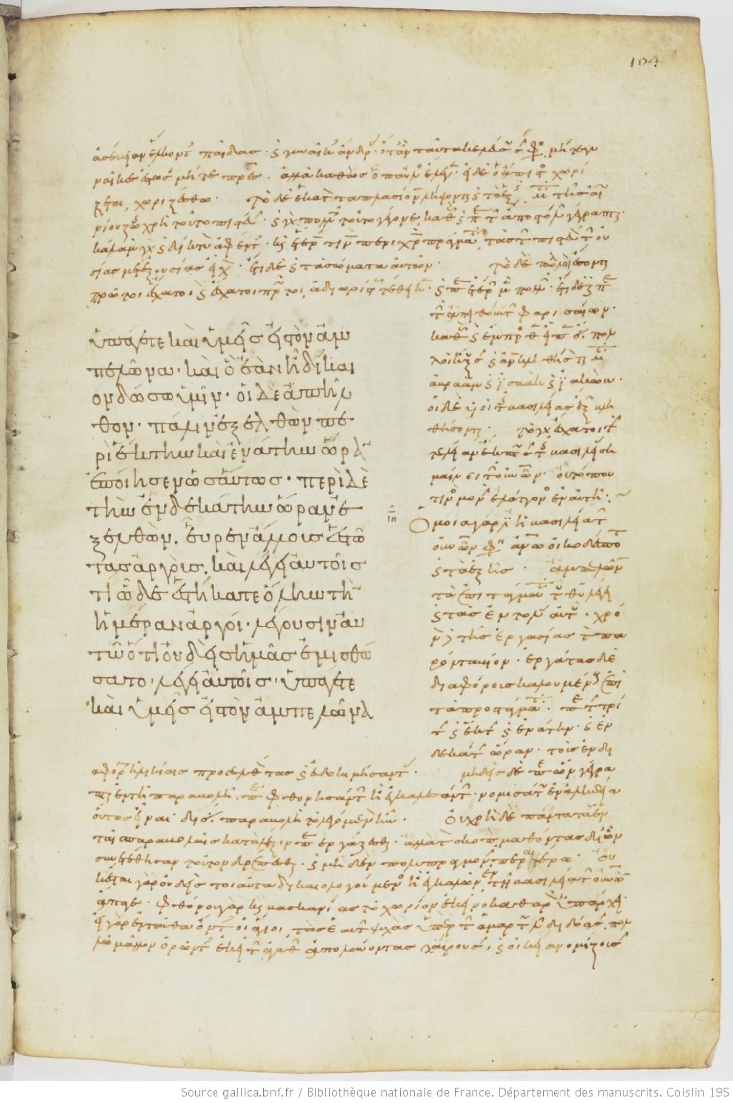Tenth-century minuscule of the Gospels with commentary on parchment; 469 leaves, 1 column, varying number of lines per column. Images are made available by the Bilbiothèque Nationale. For recent images, please visit BNF Gallica.