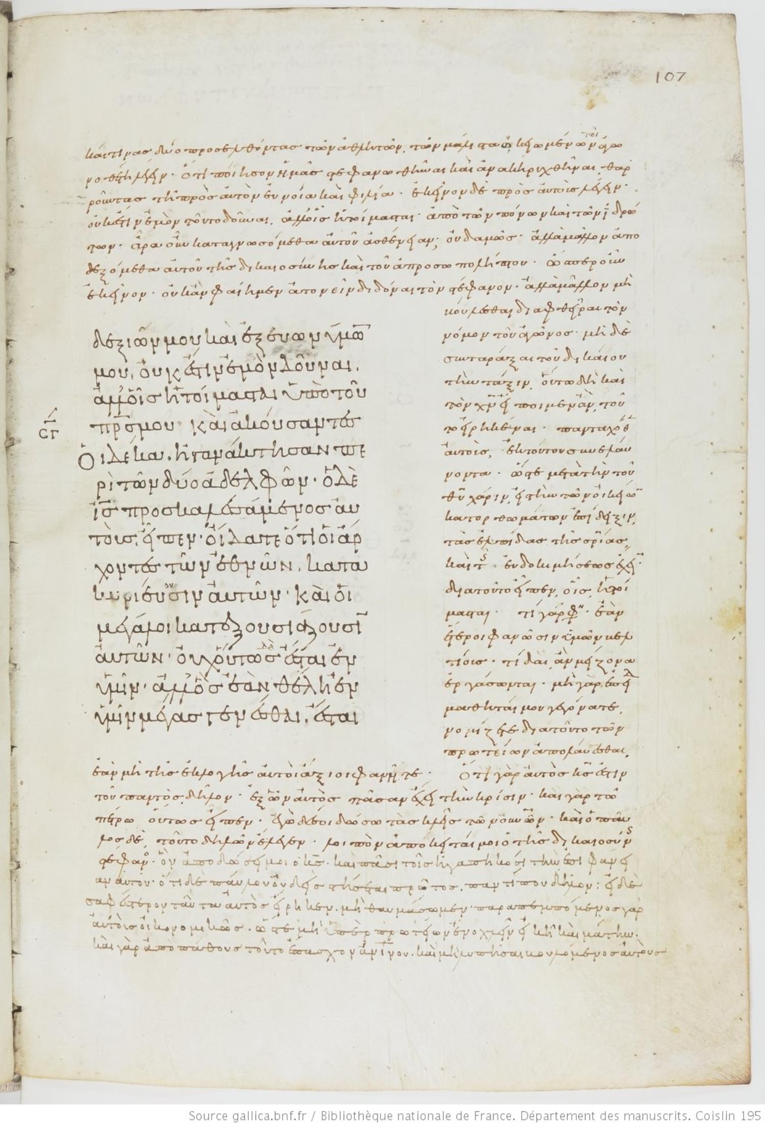 Tenth-century minuscule of the Gospels with commentary on parchment; 469 leaves, 1 column, varying number of lines per column. Images are made available by the Bilbiothèque Nationale. For recent images, please visit BNF Gallica.