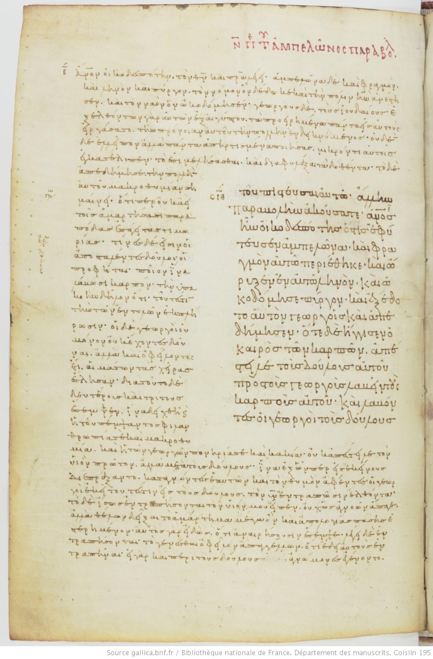 Minuscule | shelf: Coislin Grec. 195 | Parchment | Gospels | Greek | Digital
