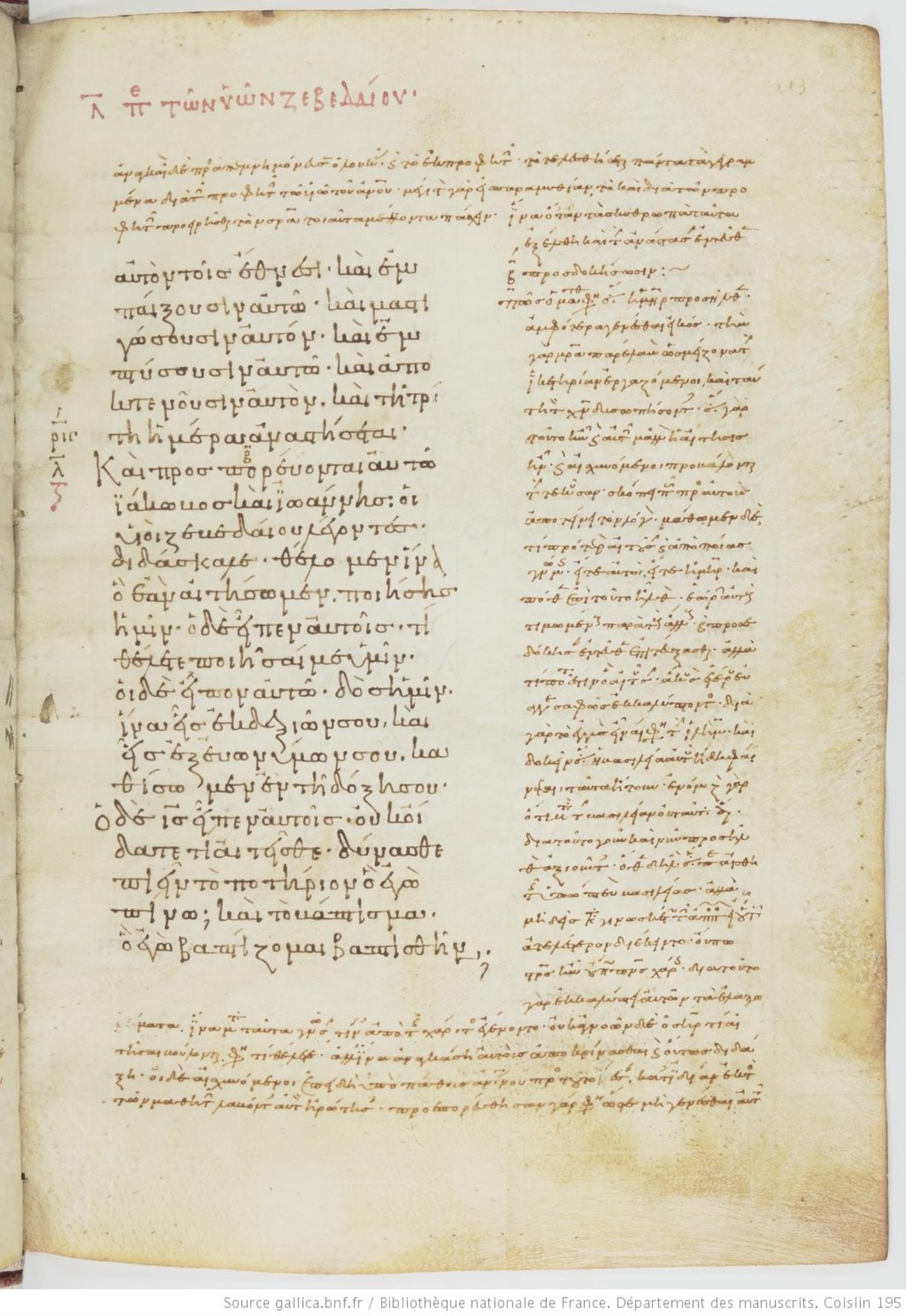 Minuscule | shelf: Coislin Grec. 195 | Parchment | Gospels | Greek | Digital