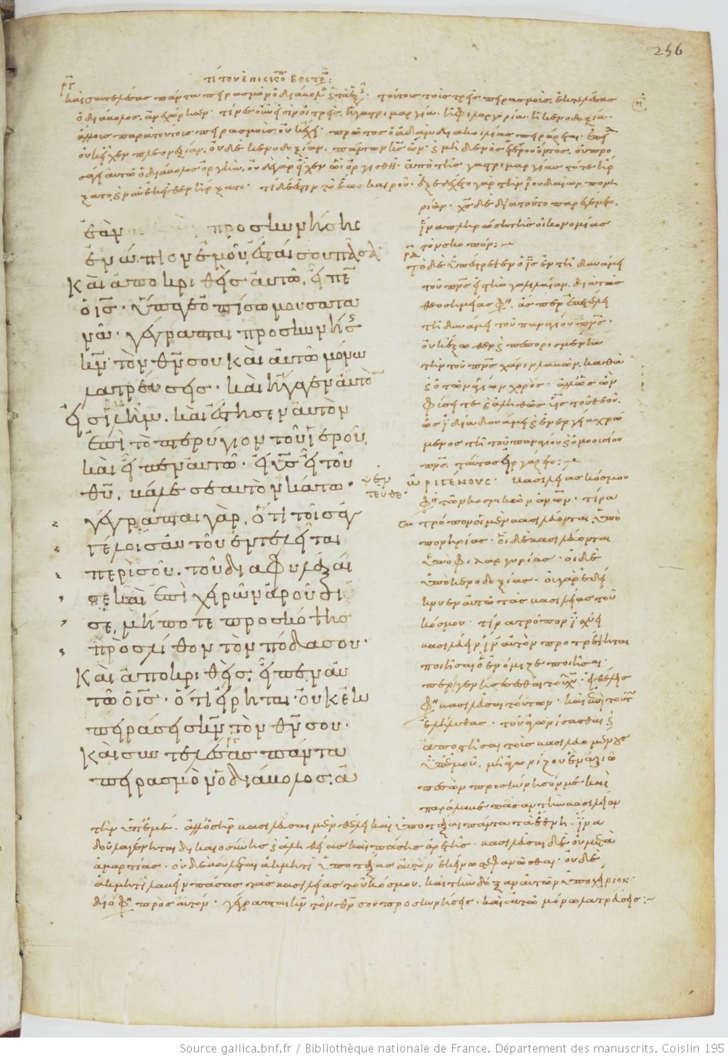 Tenth-century minuscule of the Gospels with commentary on parchment; 469 leaves, 1 column, varying number of lines per column. Images are made available by the Bilbiothèque Nationale. For recent images, please visit BNF Gallica.