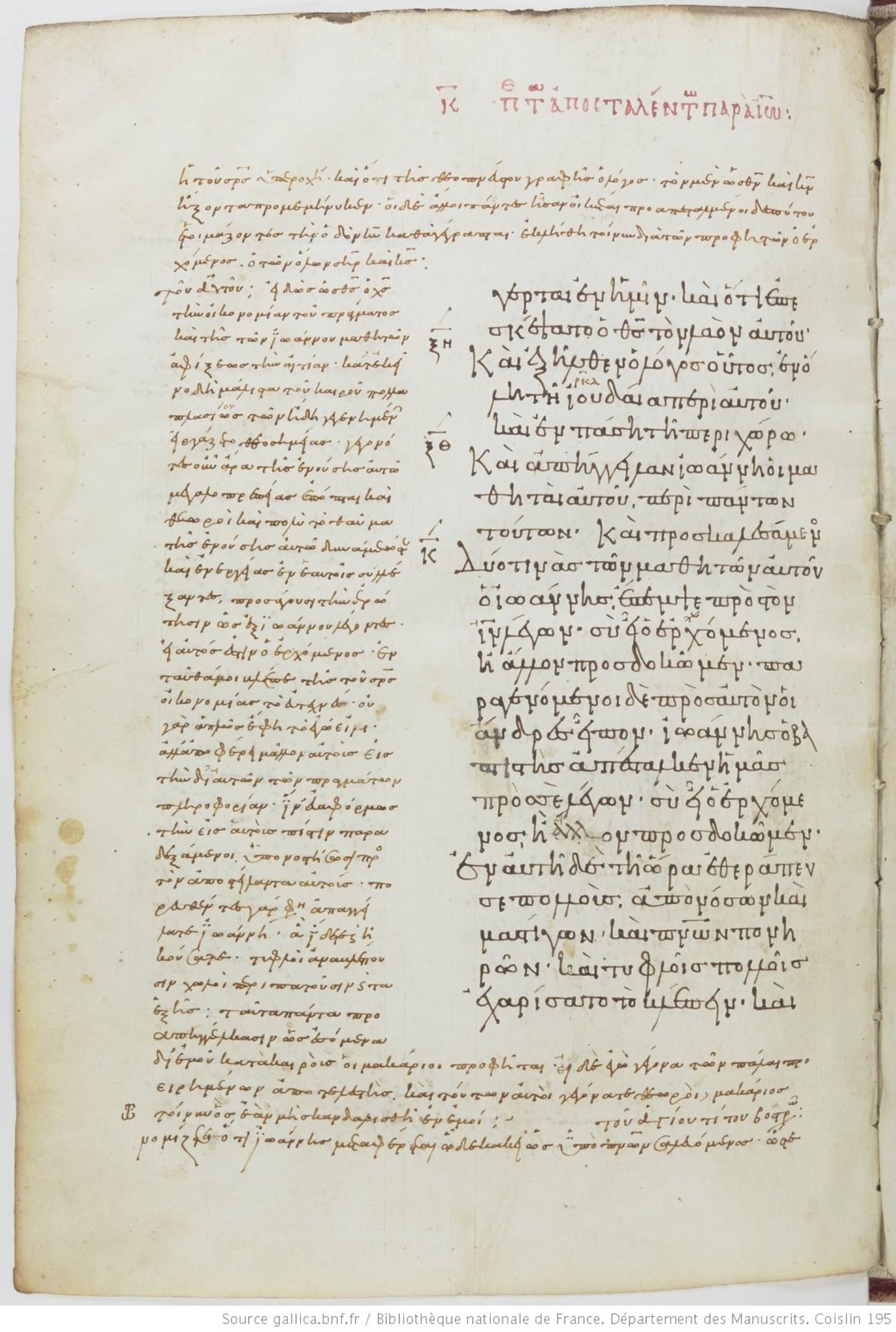 Minuscule | shelf: Coislin Grec. 195 | Parchment | Gospels | Greek | Digital