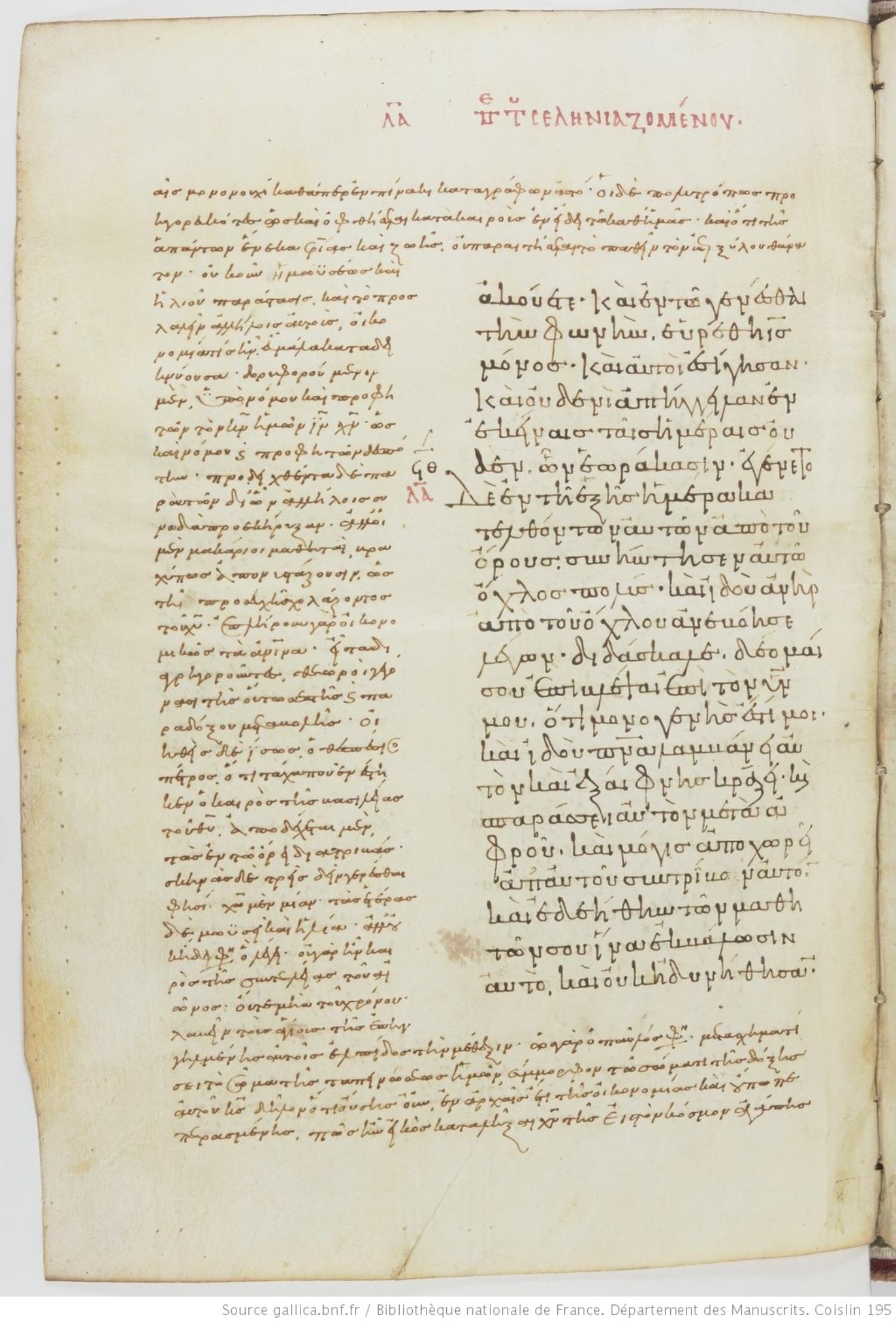 Minuscule | shelf: Coislin Grec. 195 | Parchment | Gospels | Greek | Digital