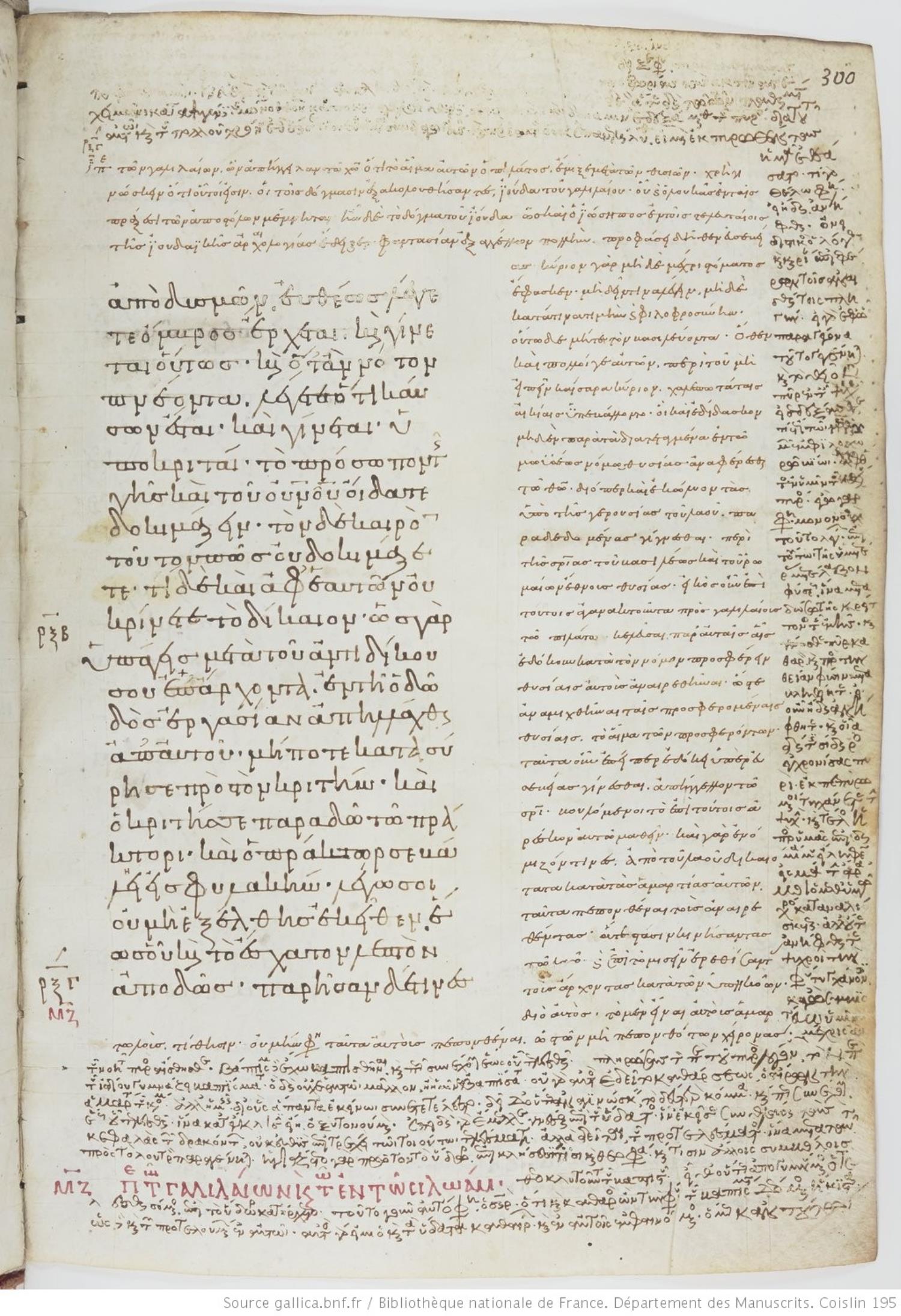 Tenth-century minuscule of the Gospels with commentary on parchment; 469 leaves, 1 column, varying number of lines per column. Images are made available by the Bilbiothèque Nationale. For recent images, please visit BNF Gallica.