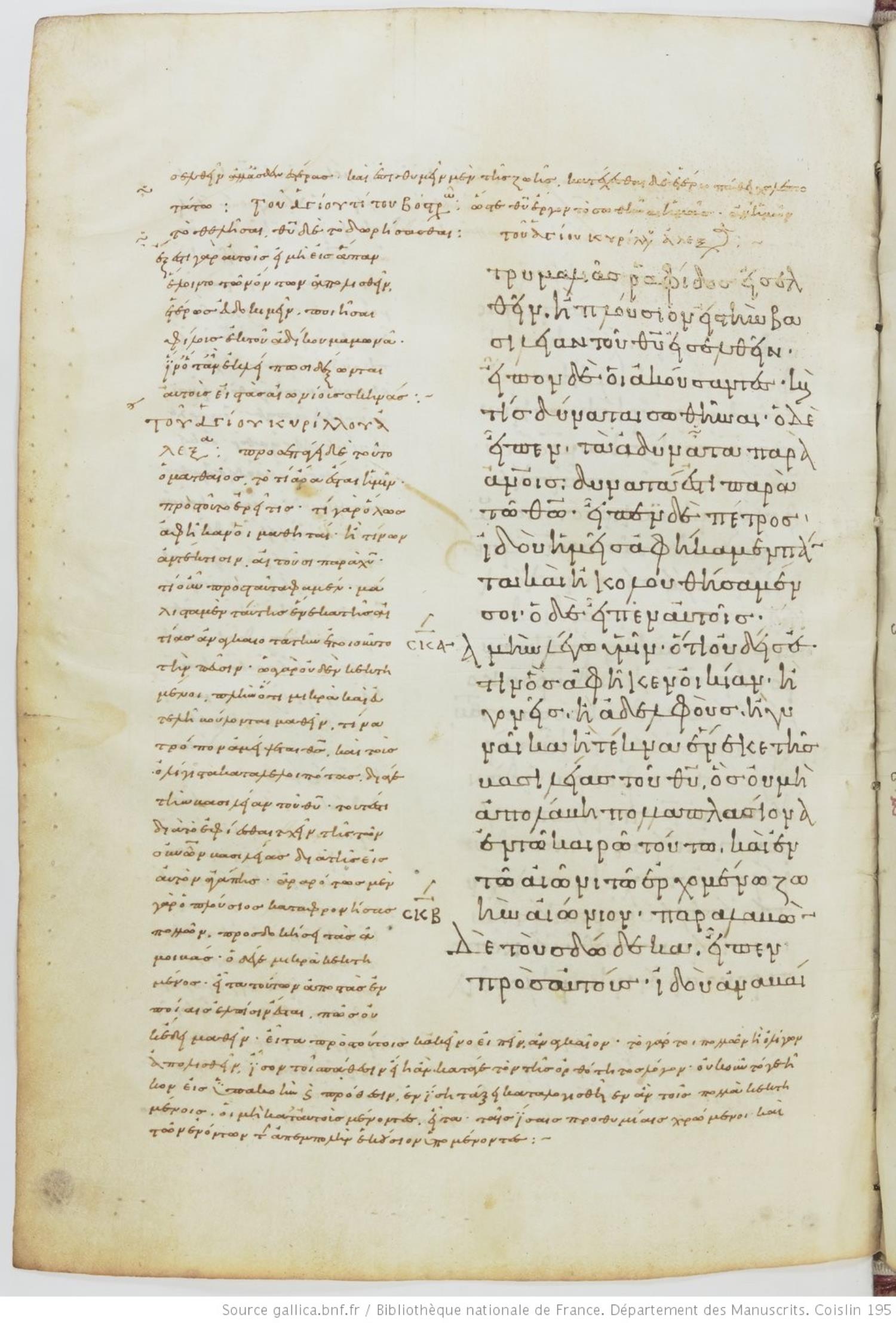 Tenth-century minuscule of the Gospels with commentary on parchment; 469 leaves, 1 column, varying number of lines per column. Images are made available by the Bilbiothèque Nationale. For recent images, please visit BNF Gallica.