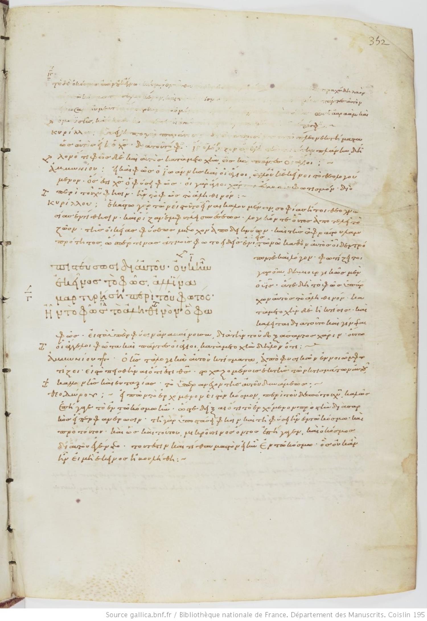 Tenth-century minuscule of the Gospels with commentary on parchment; 469 leaves, 1 column, varying number of lines per column. Images are made available by the Bilbiothèque Nationale. For recent images, please visit BNF Gallica.