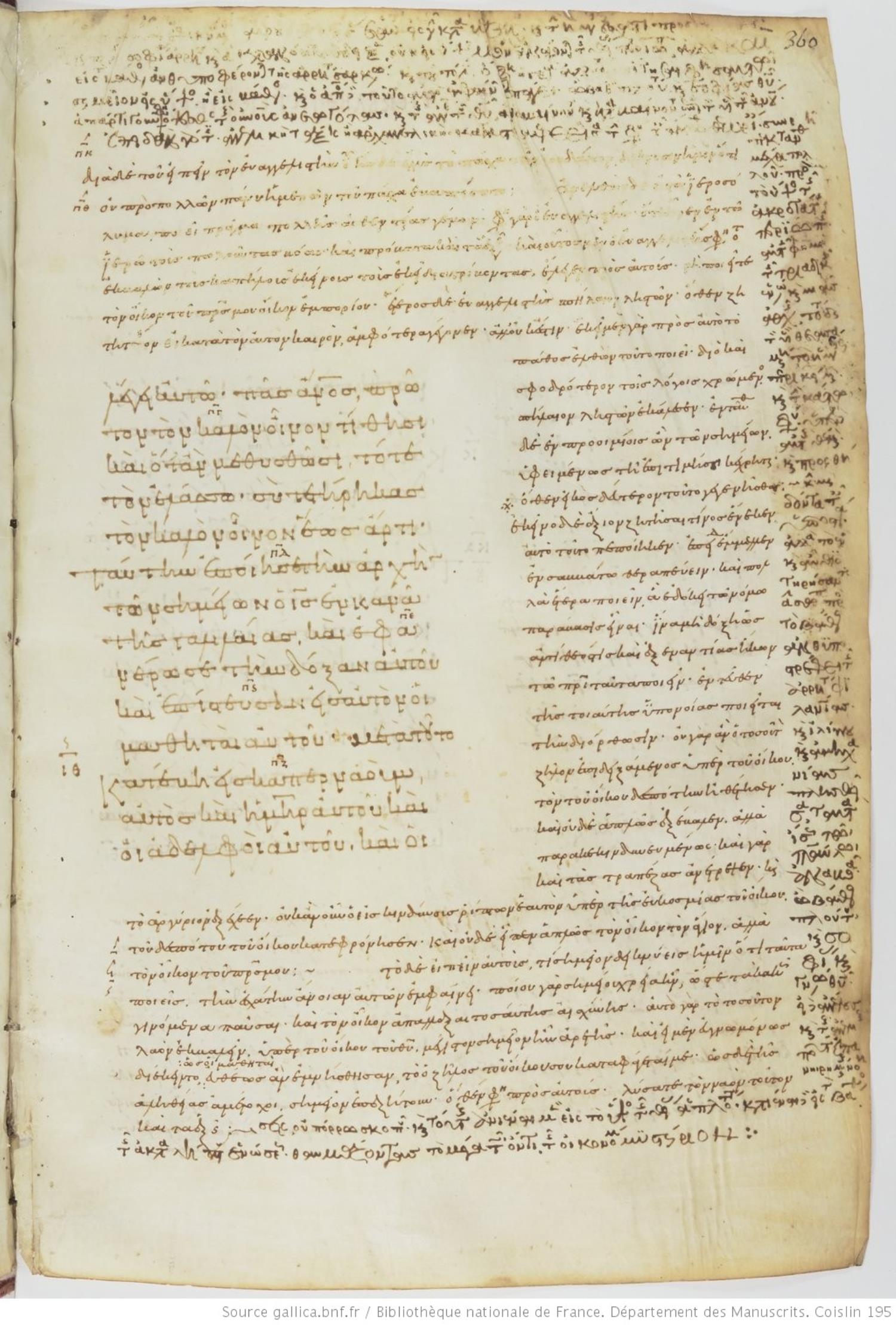 Tenth-century minuscule of the Gospels with commentary on parchment; 469 leaves, 1 column, varying number of lines per column. Images are made available by the Bilbiothèque Nationale. For recent images, please visit BNF Gallica.