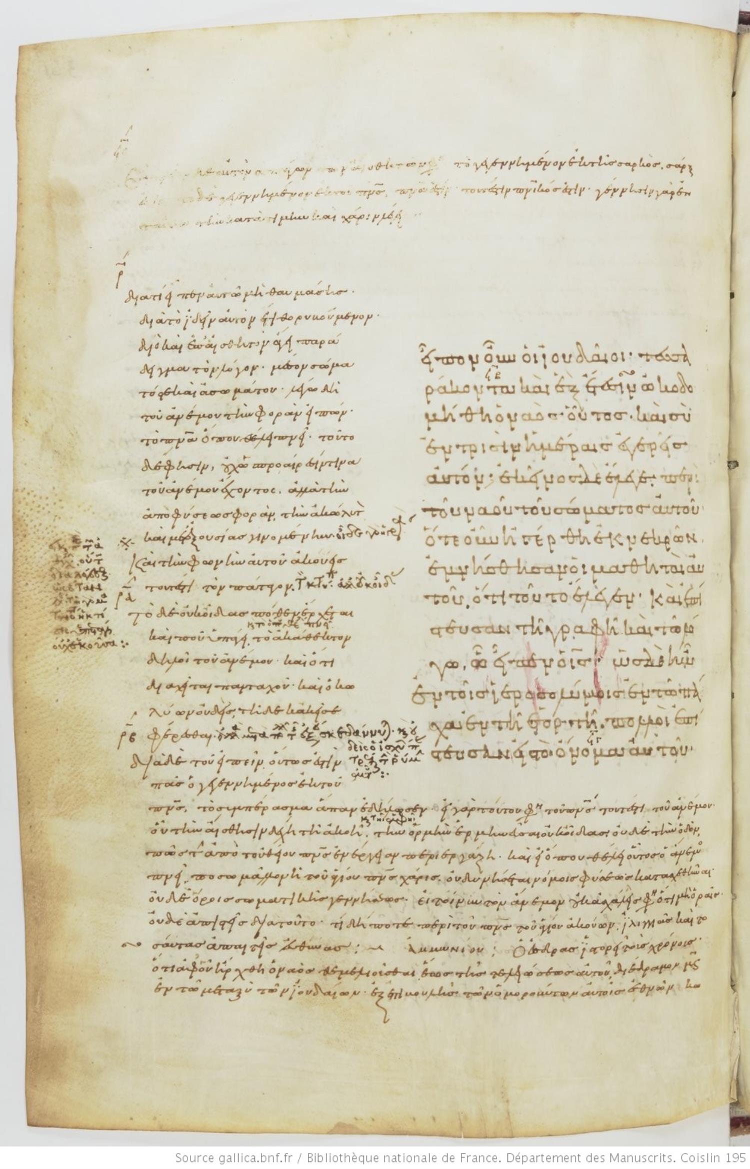Tenth-century minuscule of the Gospels with commentary on parchment; 469 leaves, 1 column, varying number of lines per column. Images are made available by the Bilbiothèque Nationale. For recent images, please visit BNF Gallica.