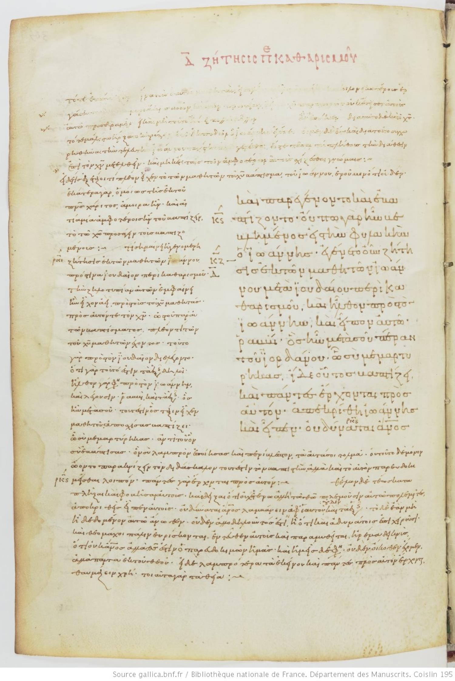 Minuscule | shelf: Coislin Grec. 195 | Parchment | Gospels | Greek | Digital