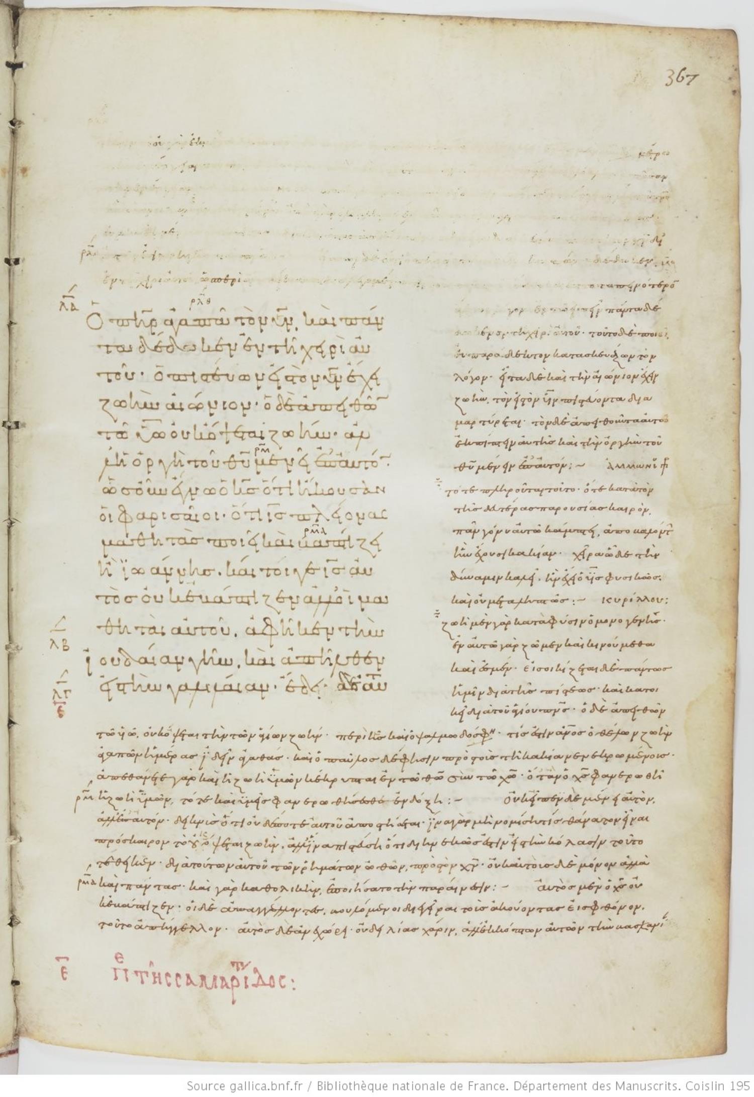 Tenth-century minuscule of the Gospels with commentary on parchment; 469 leaves, 1 column, varying number of lines per column. Images are made available by the Bilbiothèque Nationale. For recent images, please visit BNF Gallica.