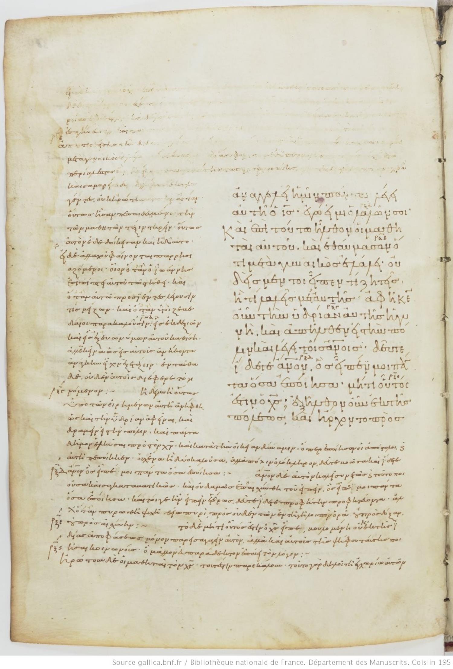 Tenth-century minuscule of the Gospels with commentary on parchment; 469 leaves, 1 column, varying number of lines per column. Images are made available by the Bilbiothèque Nationale. For recent images, please visit BNF Gallica.