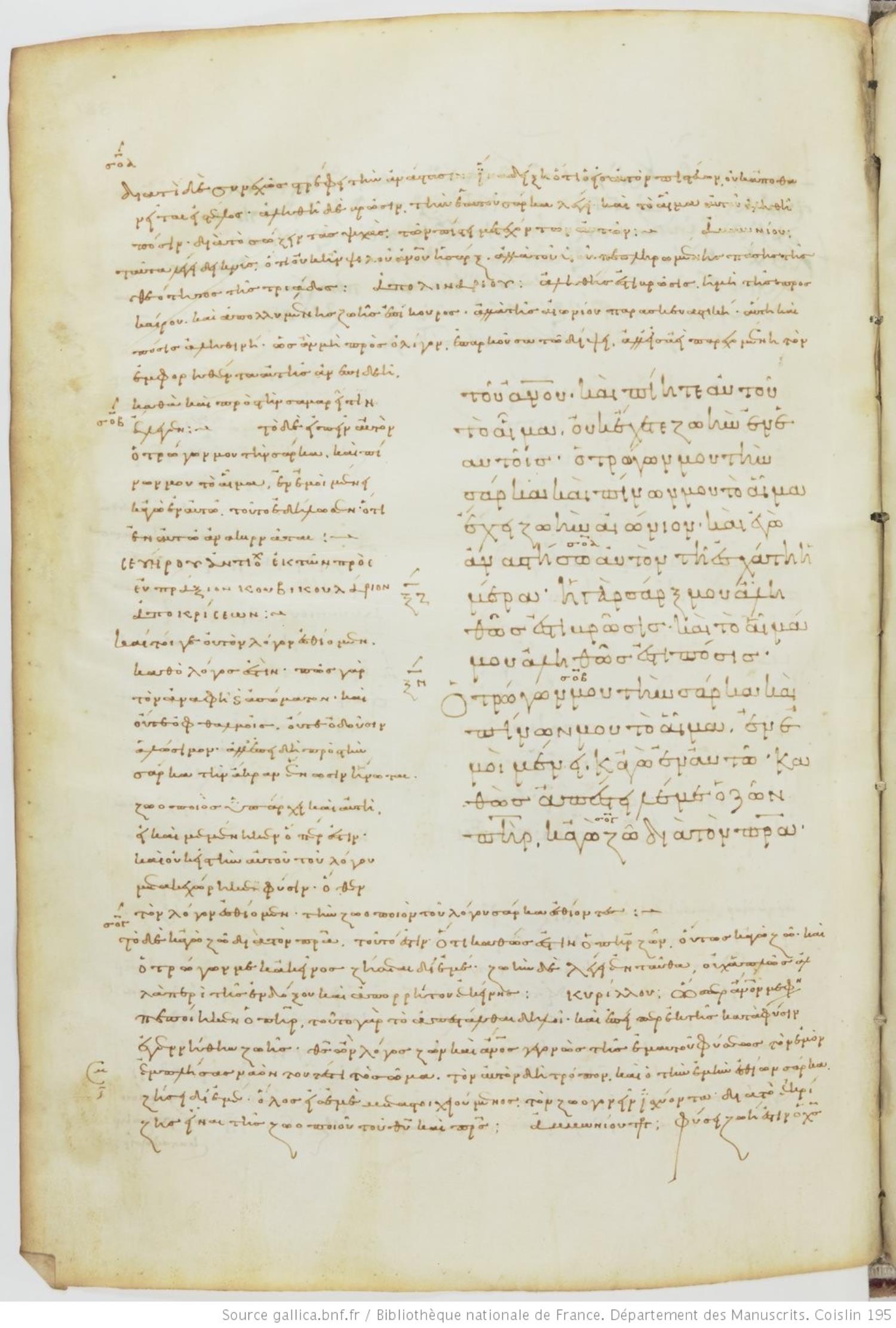 Tenth-century minuscule of the Gospels with commentary on parchment; 469 leaves, 1 column, varying number of lines per column. Images are made available by the Bilbiothèque Nationale. For recent images, please visit BNF Gallica.