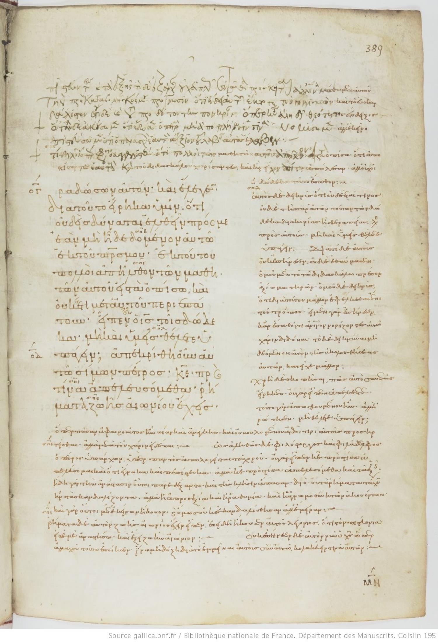 Tenth-century minuscule of the Gospels with commentary on parchment; 469 leaves, 1 column, varying number of lines per column. Images are made available by the Bilbiothèque Nationale. For recent images, please visit BNF Gallica.